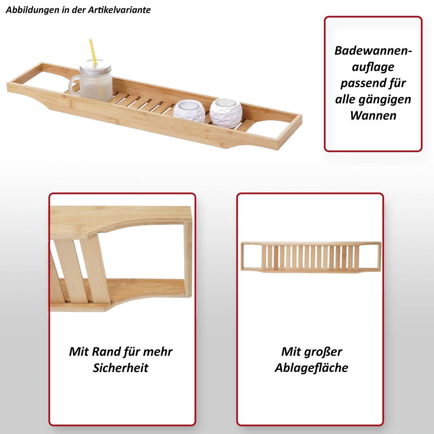 Mendler Badewannenauflage HWC-B73, Badewannenablage, Bambus 5x67x15cm