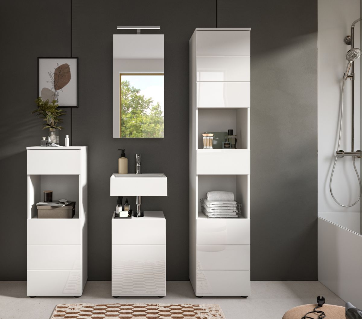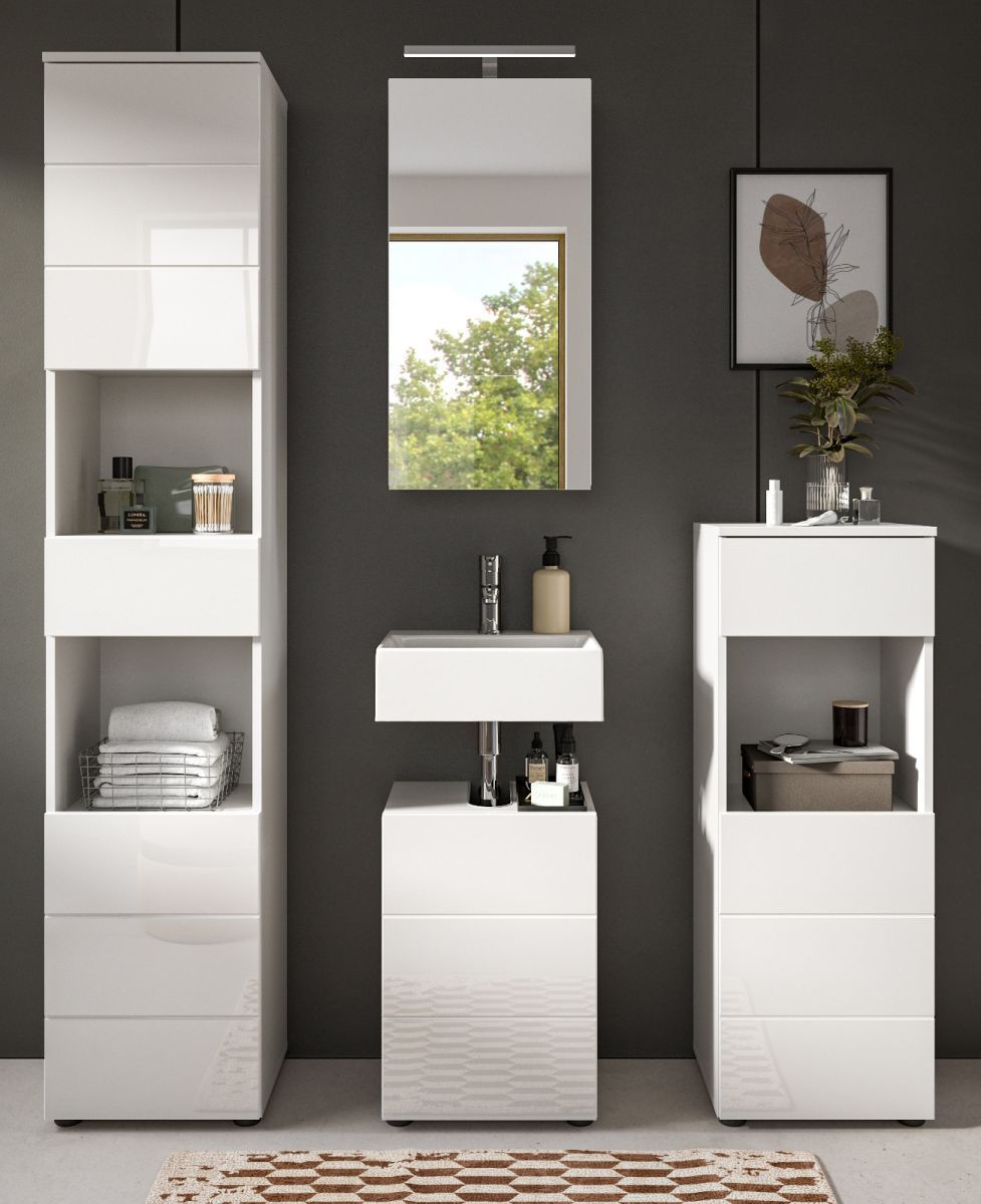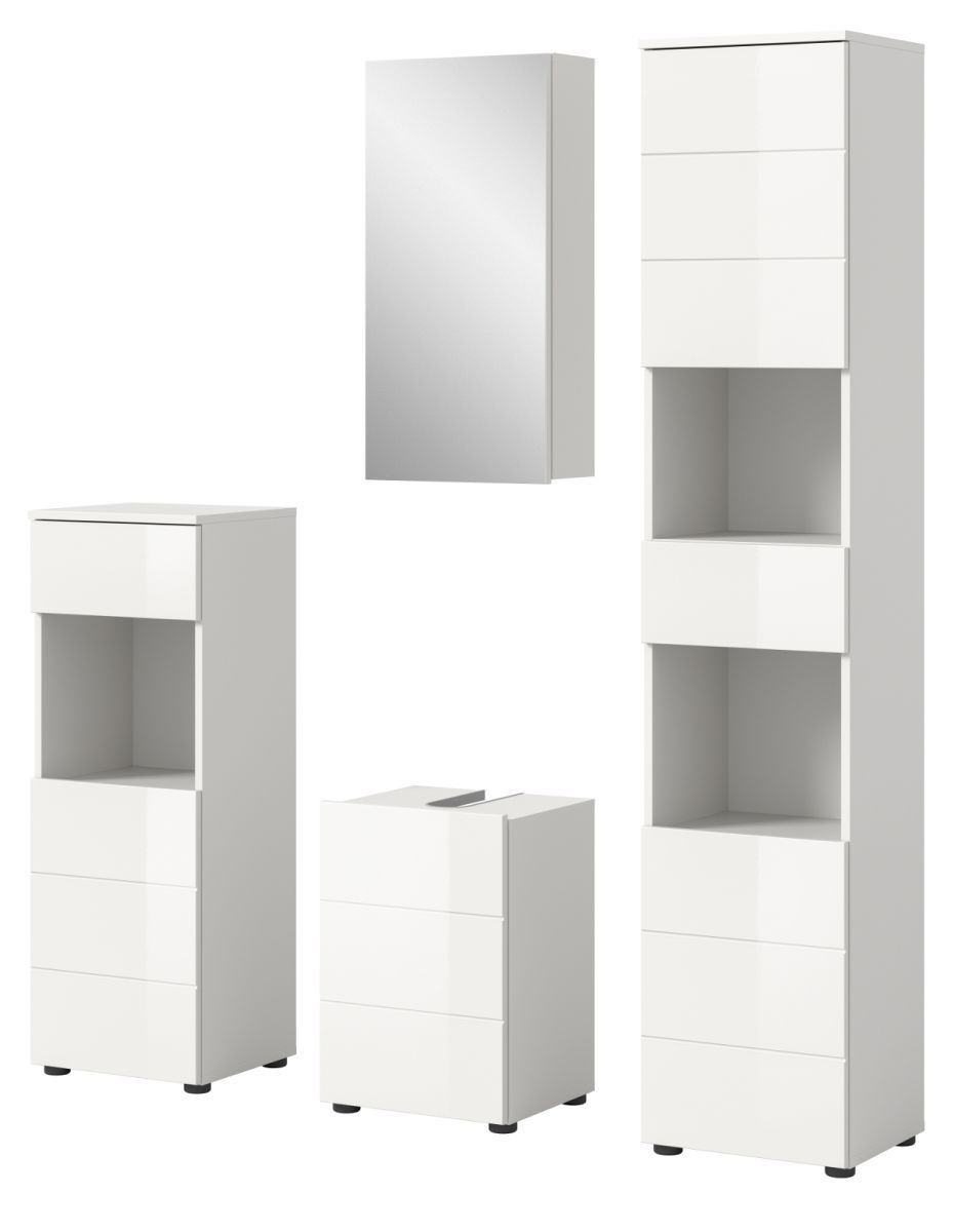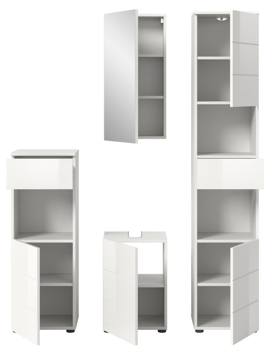 Badezimmer Badmöbel Set 4-tlg. in weiß Hochglanz Bad Schrankset Larik 144 x 190 cm