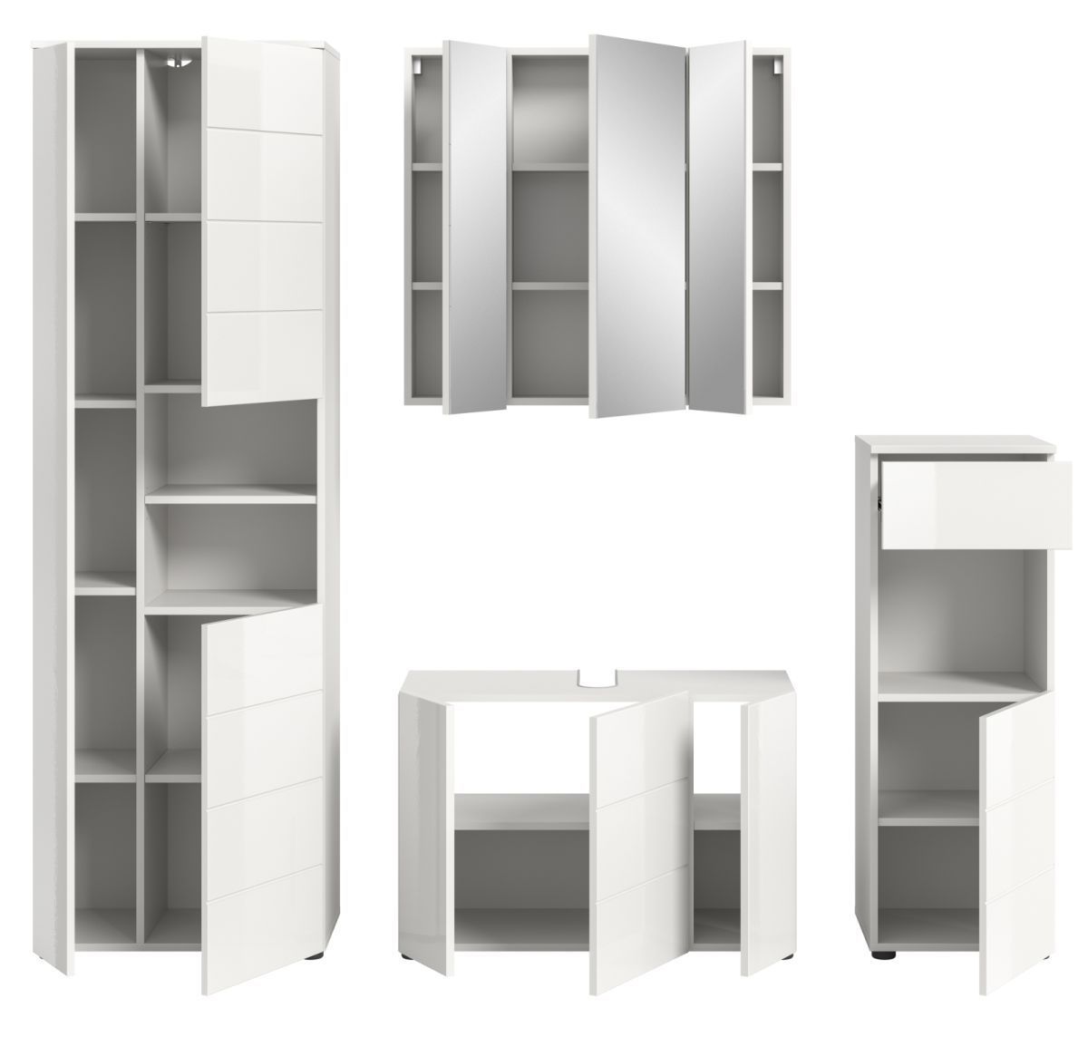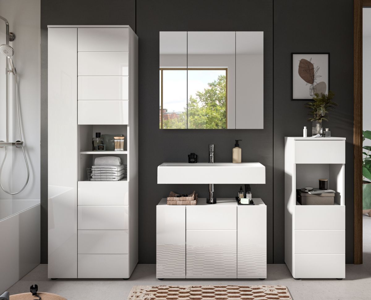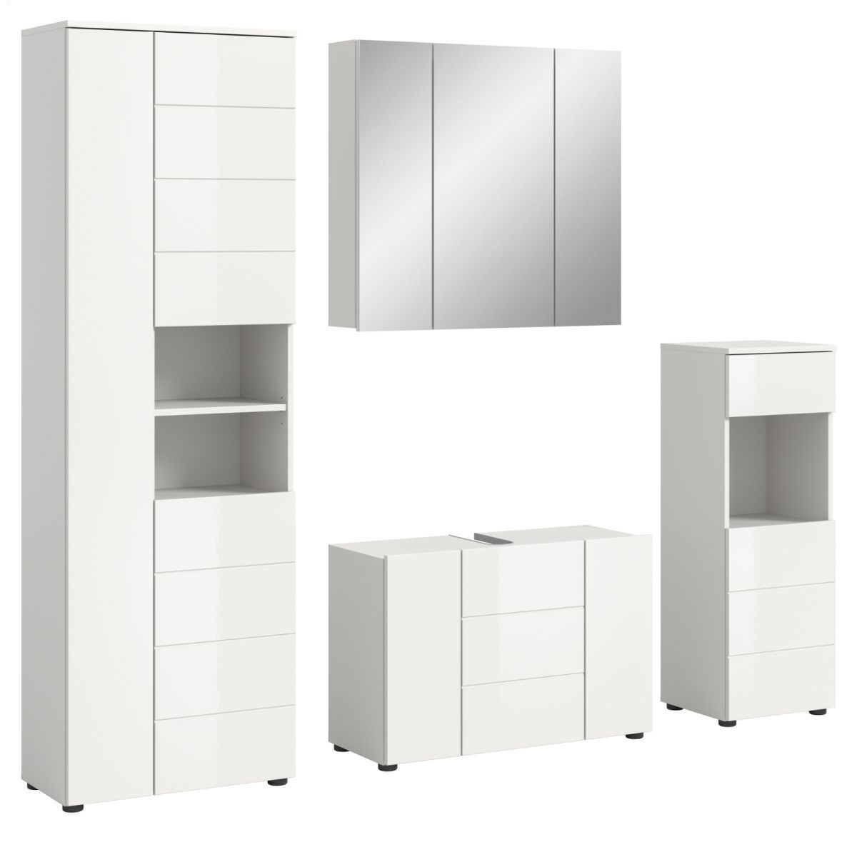 Badezimmer Badmöbel Set 4-tlg. in weiß Hochglanz Bad Schrankset Larik 210 x 190 cm