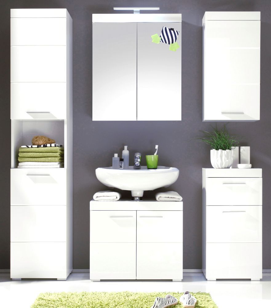 Trendteam Badezimmer Badmöbel Set Amanda Hochglanz weiß Badkombination 2-teilig 37x190 cm