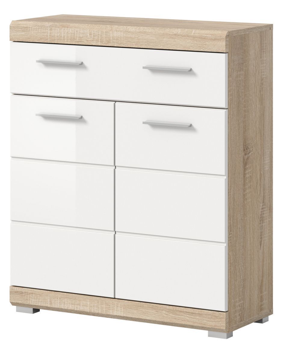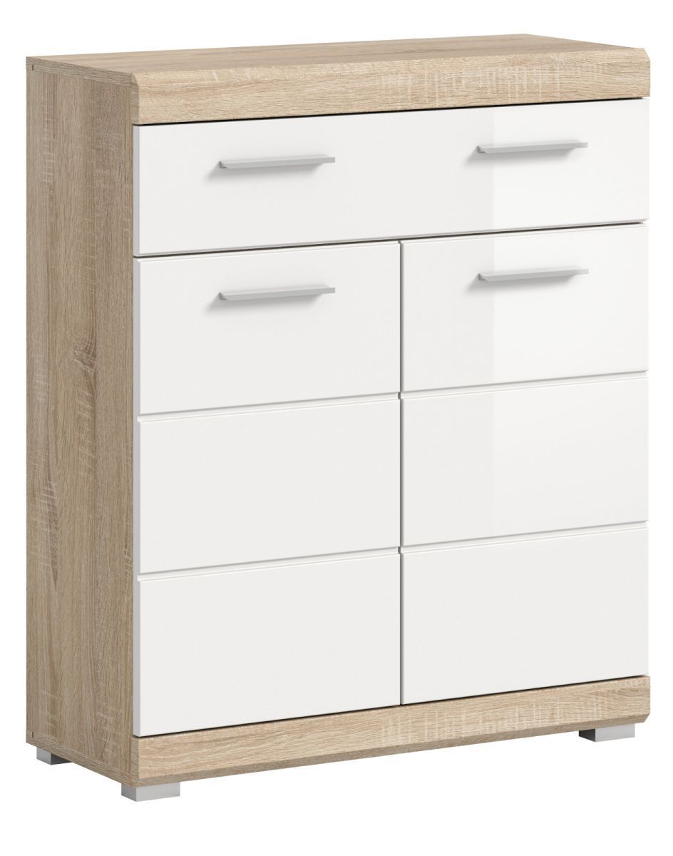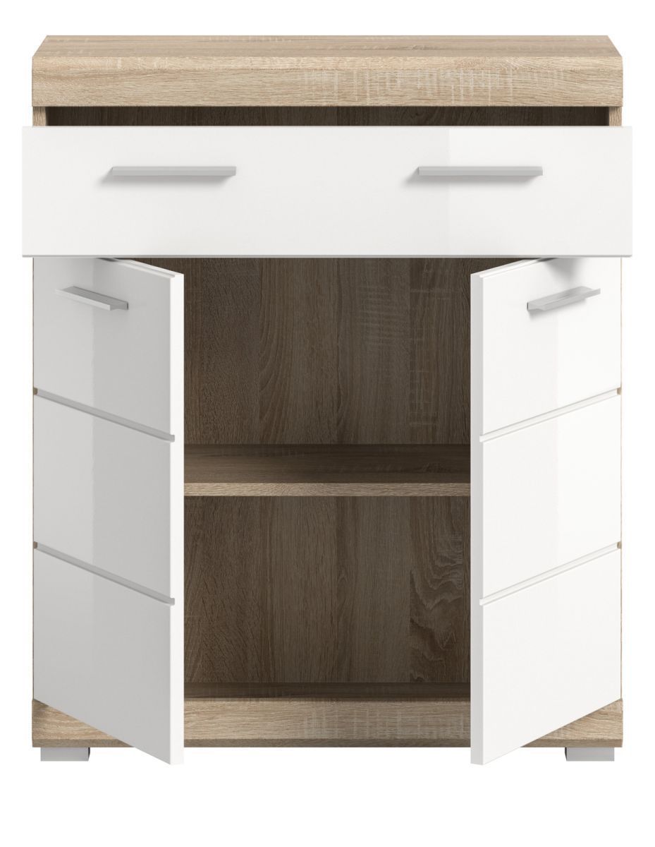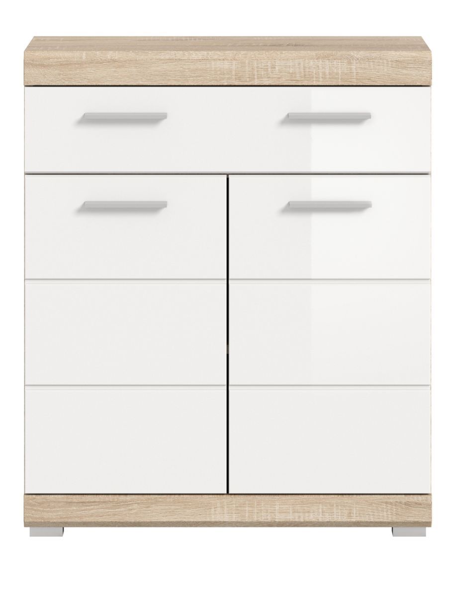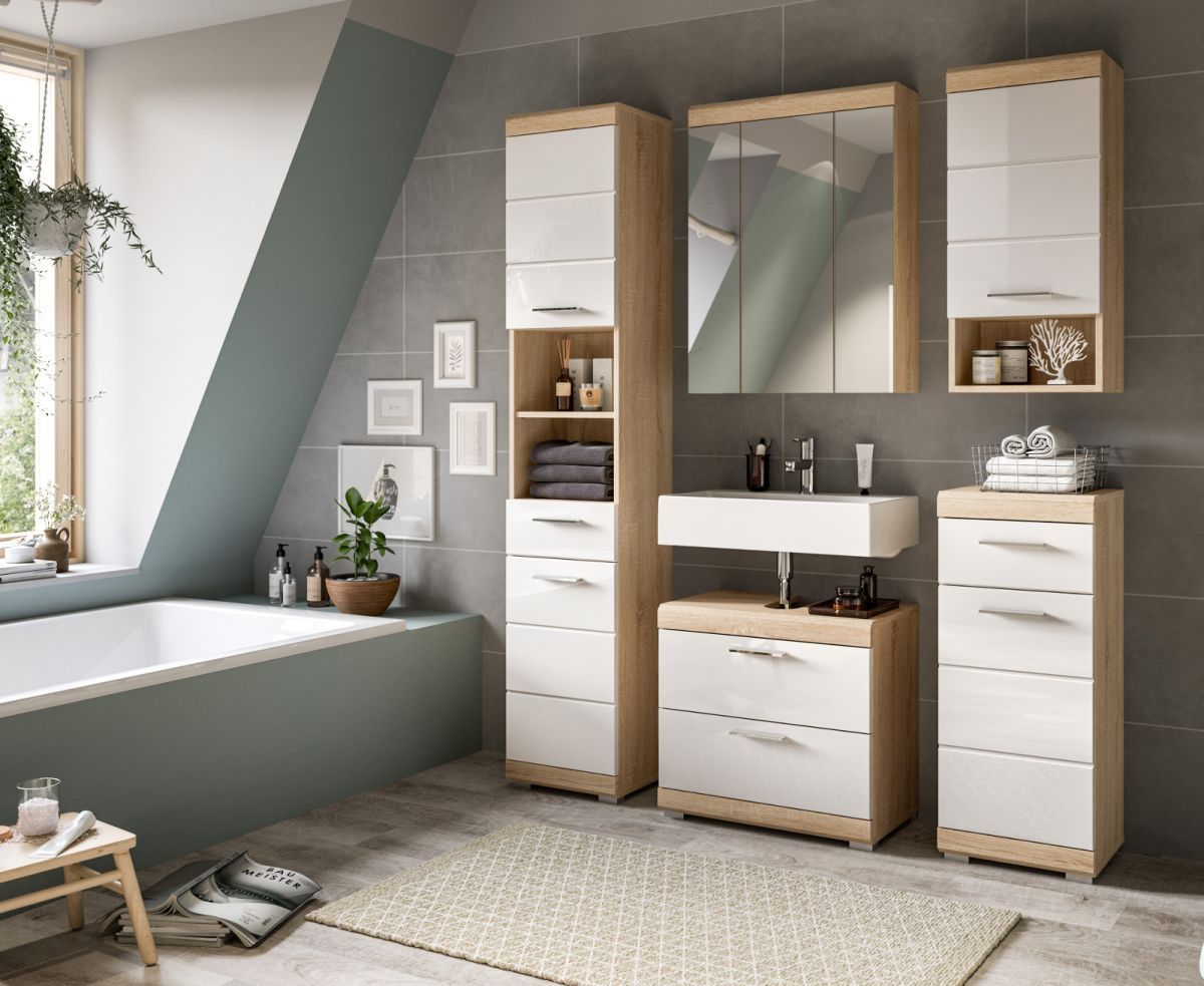 Badezimmer Badschrank Kommode weiß Hochglanz Eiche Sonoma Schubkasten 74x88 cm Mambo