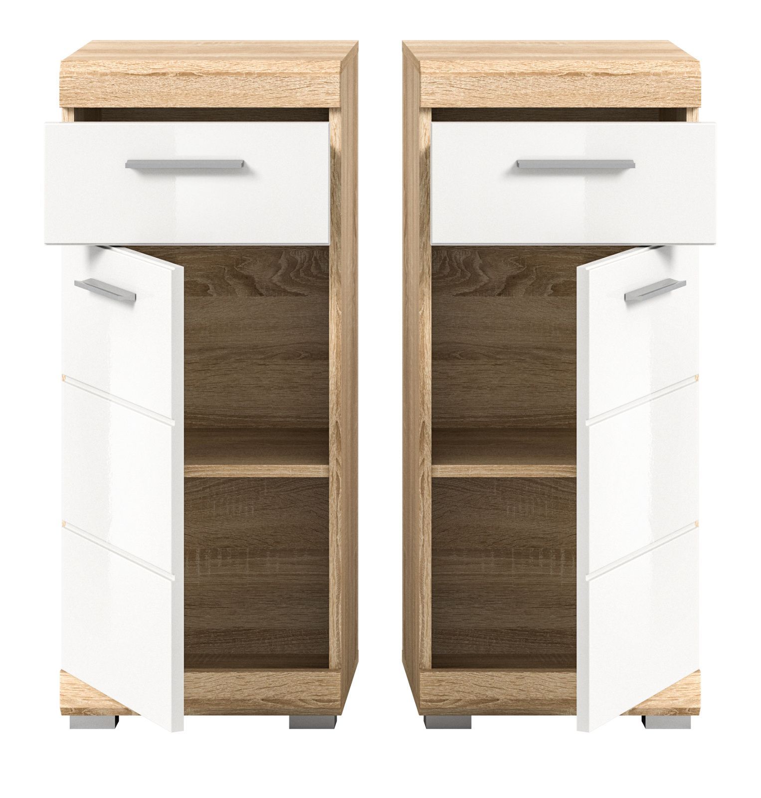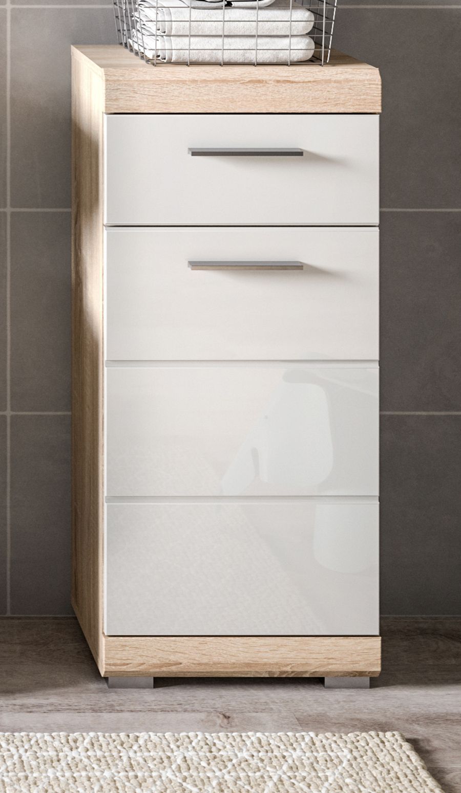 Badezimmer Badschrank Kommode weiß Hochglanz Eiche Sonoma Schubkasten Mambo