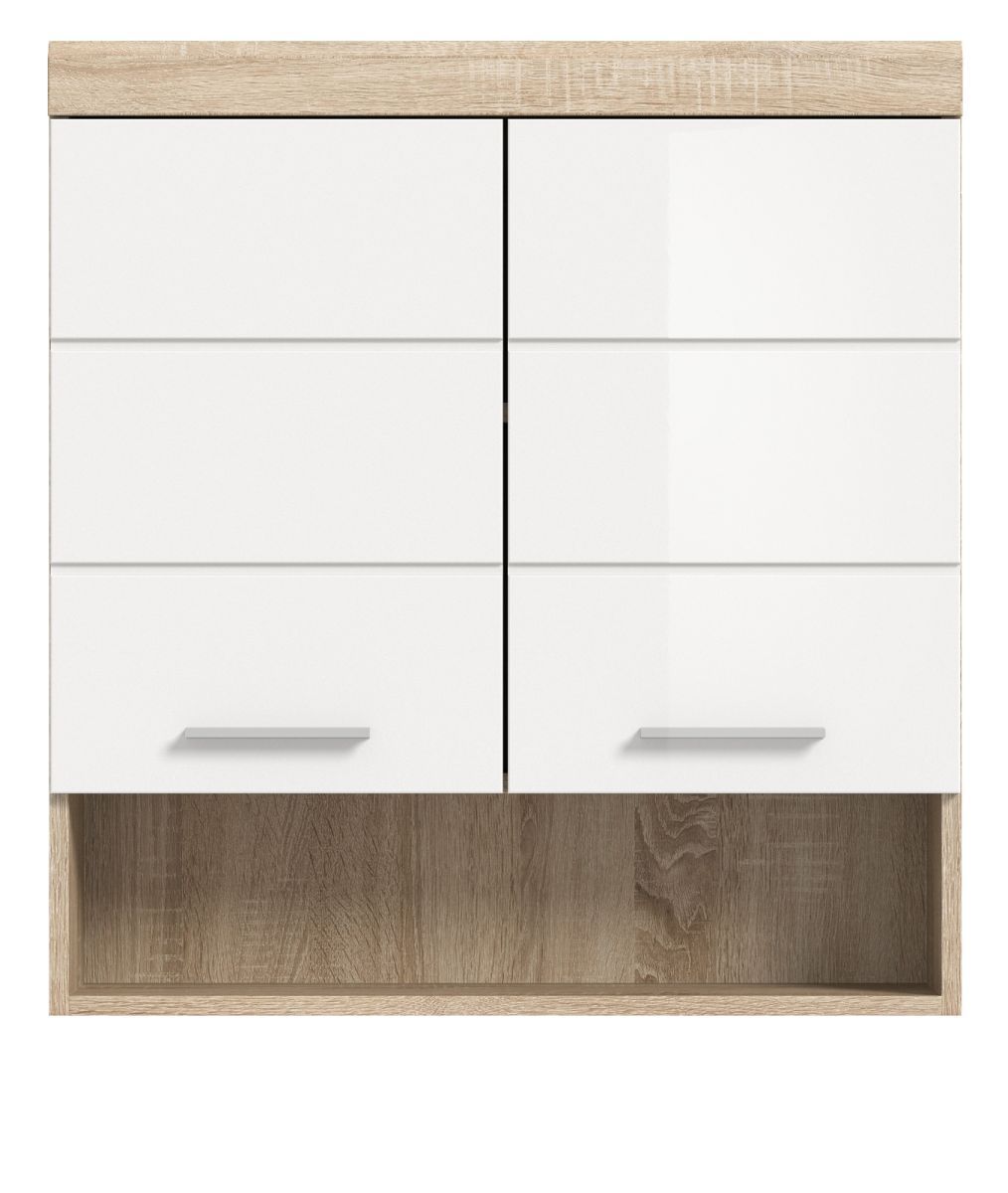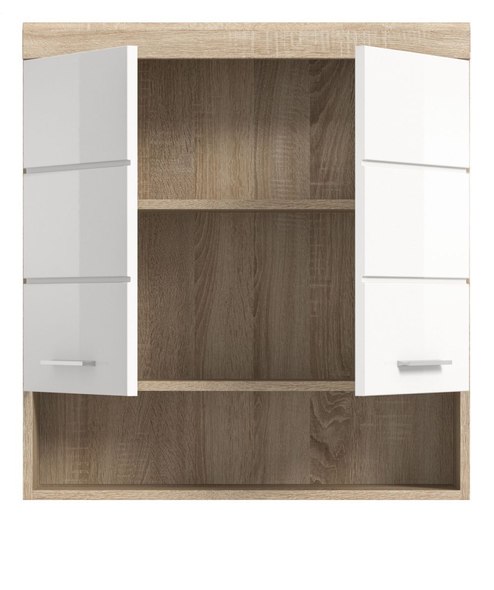 Badezimmer Hängeschrank Bad Möbel Schrank weiß Hochglanz Eiche Sonoma Mambo 74 x 79cm