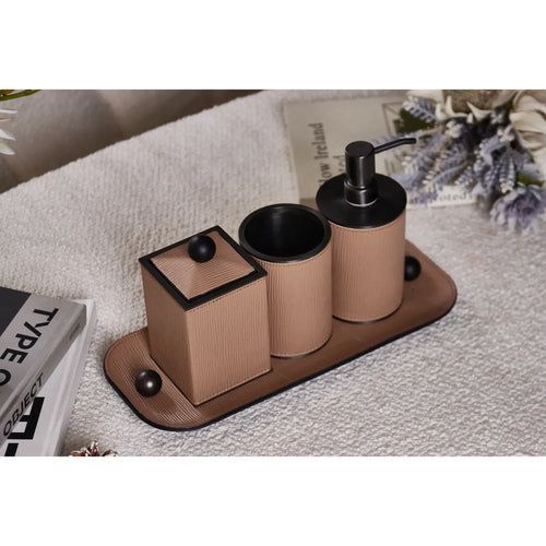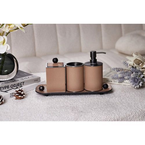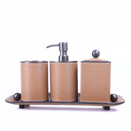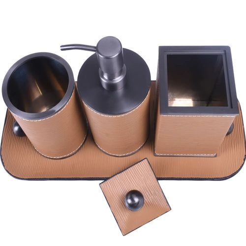 Badezimmer-Set - aus 4 Teilen - Luxus Feinleder Badset Seifenspender Eleganza Bath