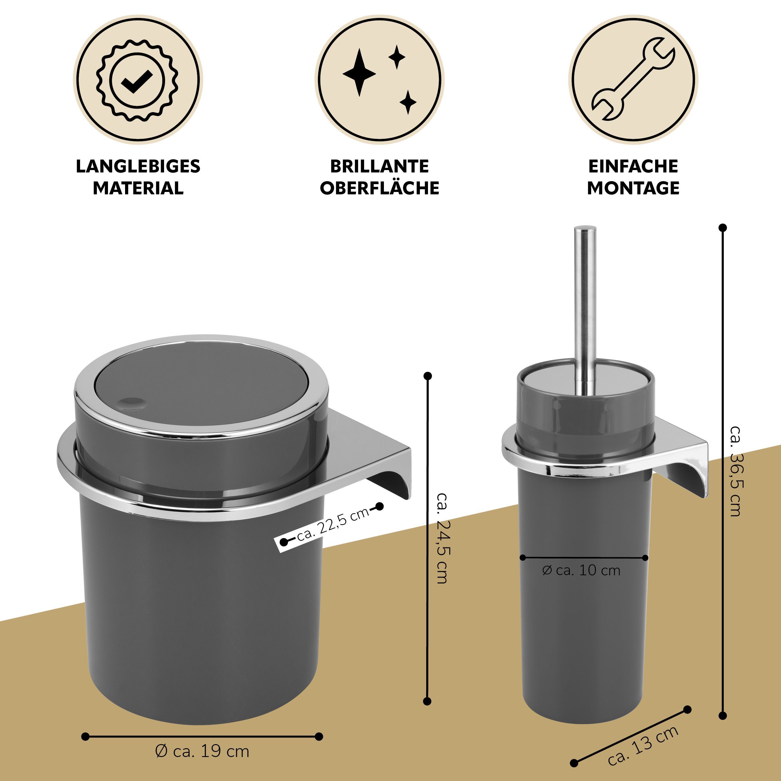 Badezimmer-Set, Zubehör-Set 2-tlg., Kunststoff, Savona grau