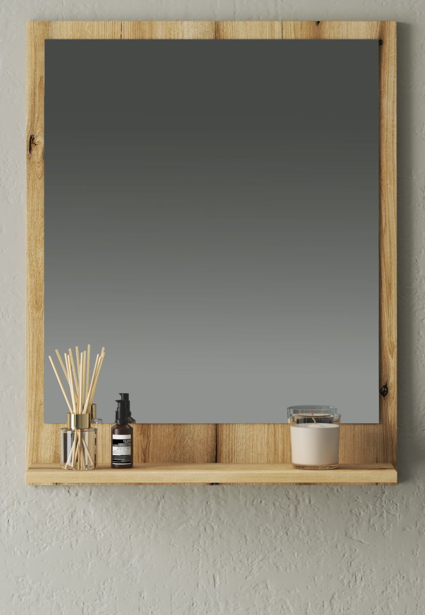 Badezimmer Spiegel Badspiegel Eiche Evoke Wandspiegel mit Ablage Torsby 60 x 75 cm