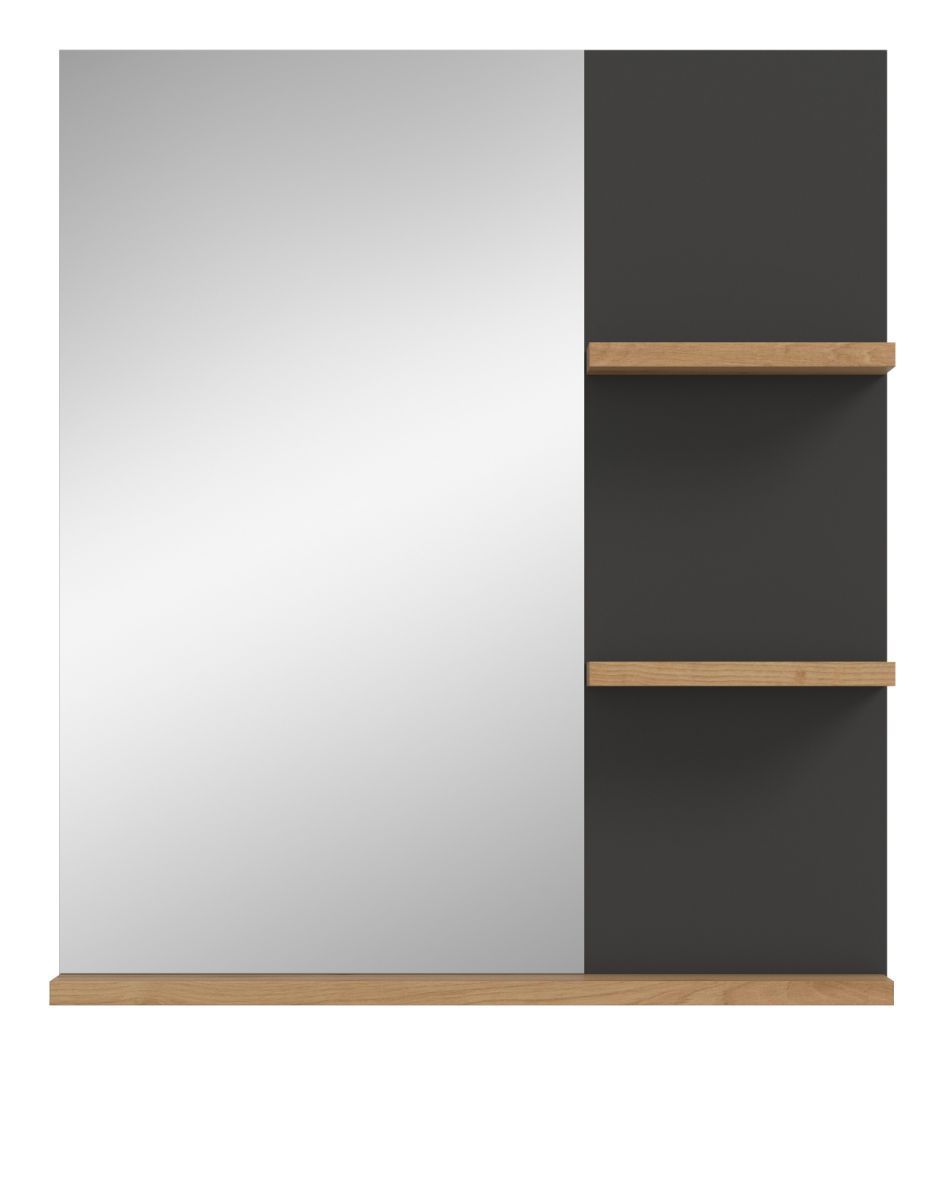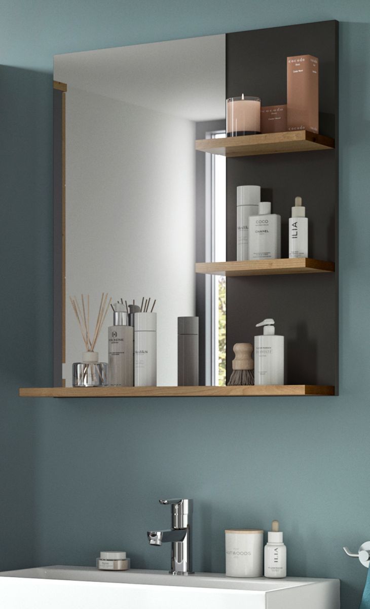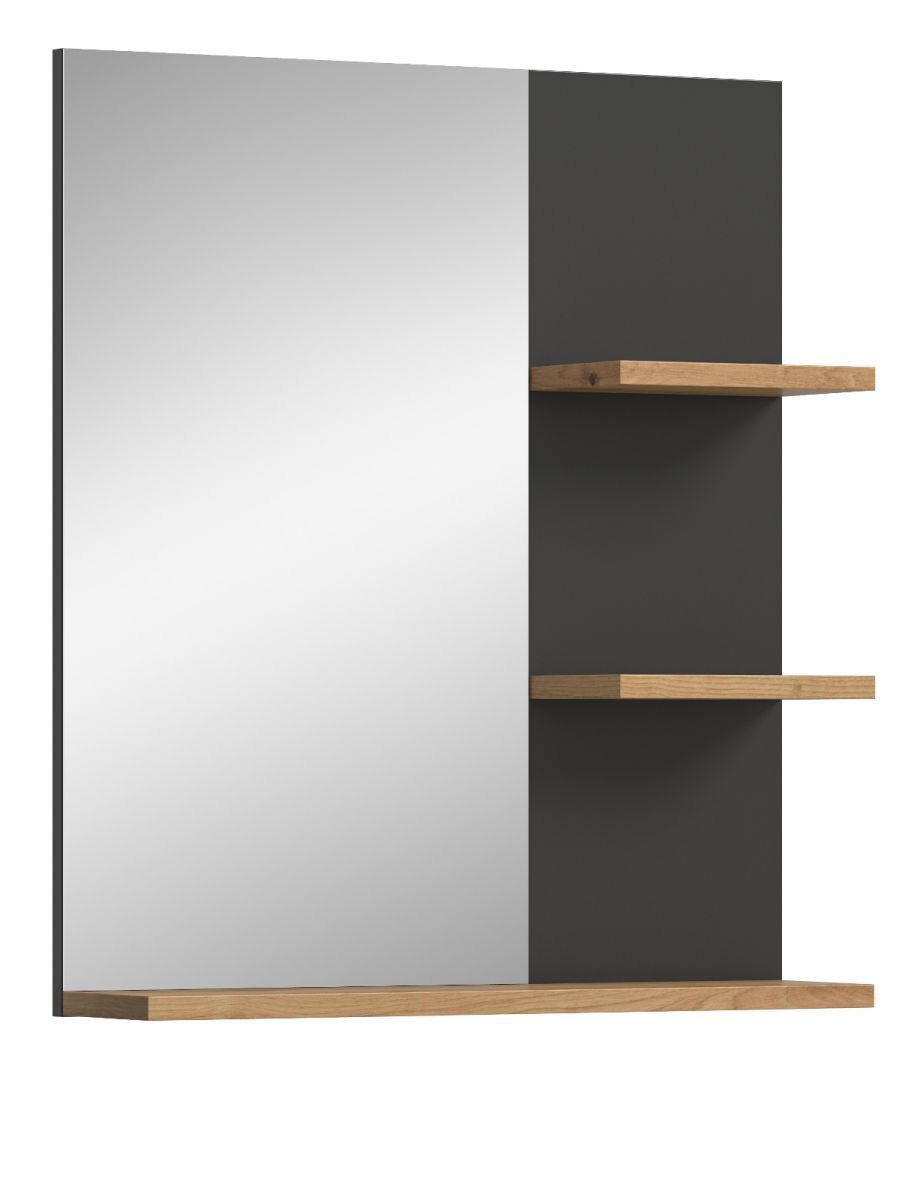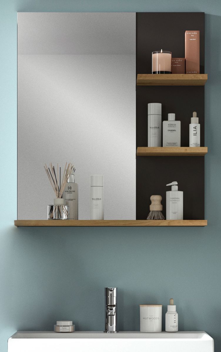 Badezimmer Spiegel Regal Ablagen Wandspiegel Eiche grau Badspiegel Cooper 63 x 73 cm