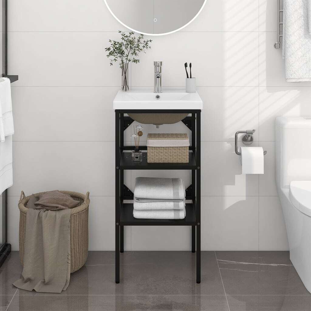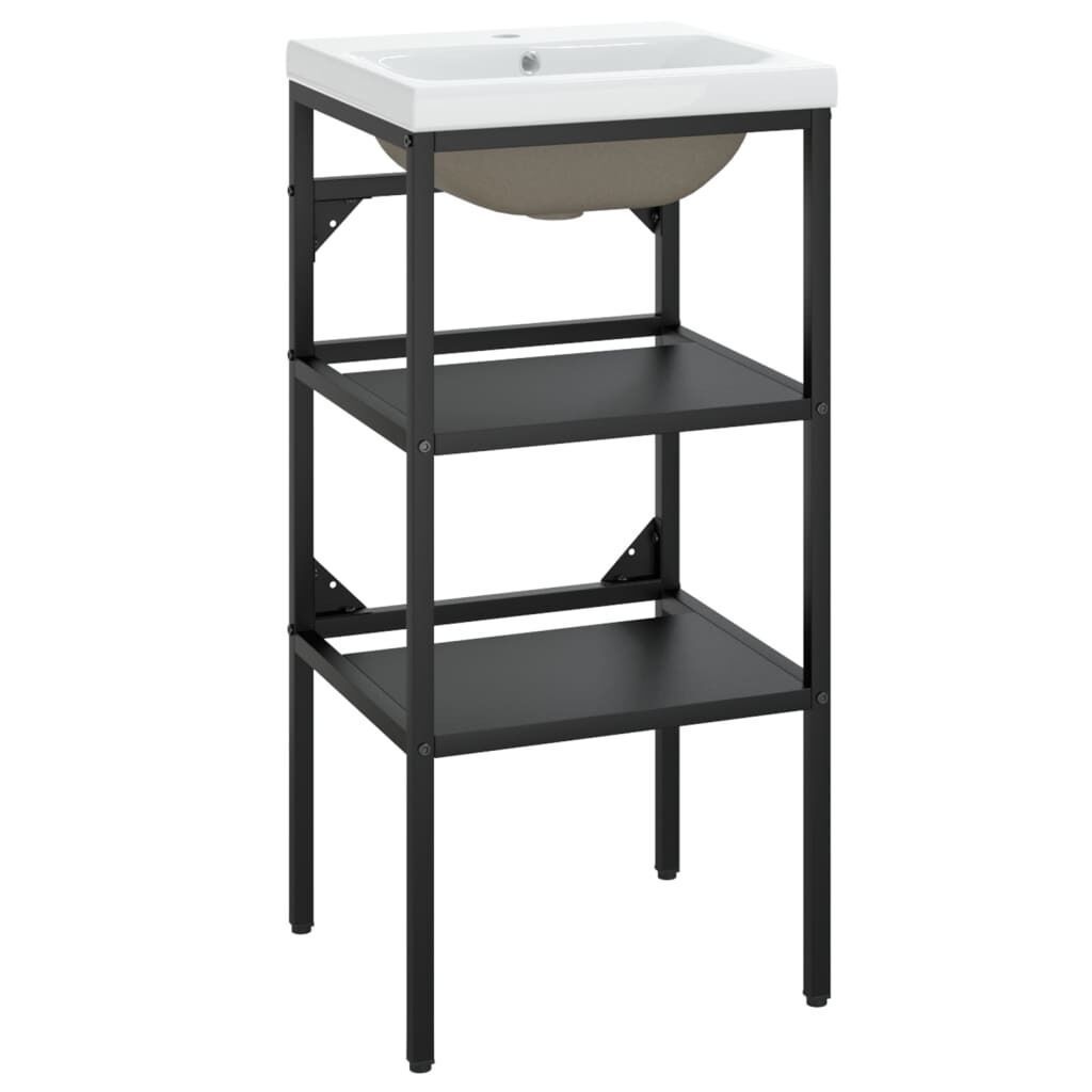 VIDAXL Badezimmer-Waschtischgestell mit Waschbecken Schwarz Eisen