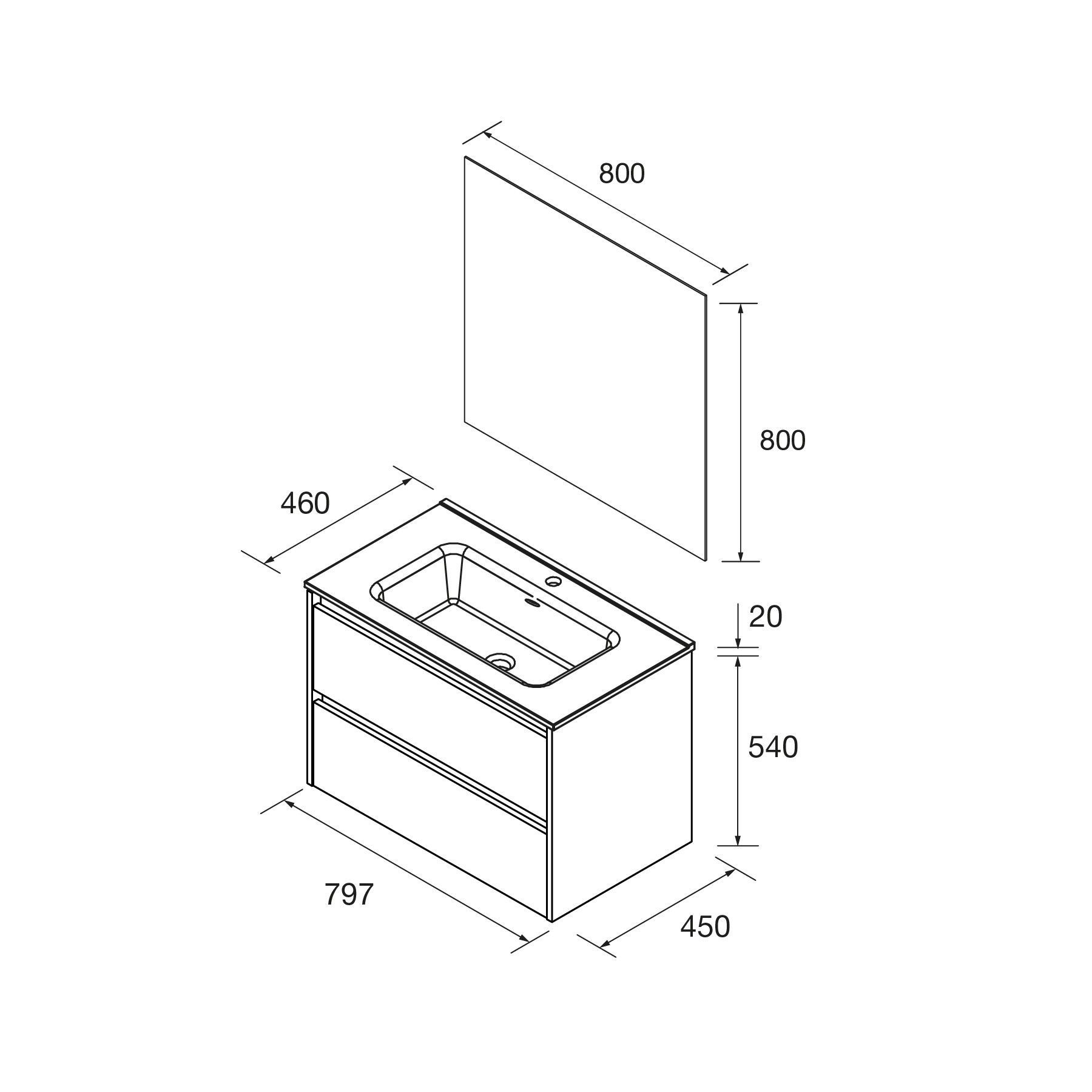 Badezimmermöbel NOJA 800 2 Schubladen GREEN SATIN + Waschtisch + Spiegel