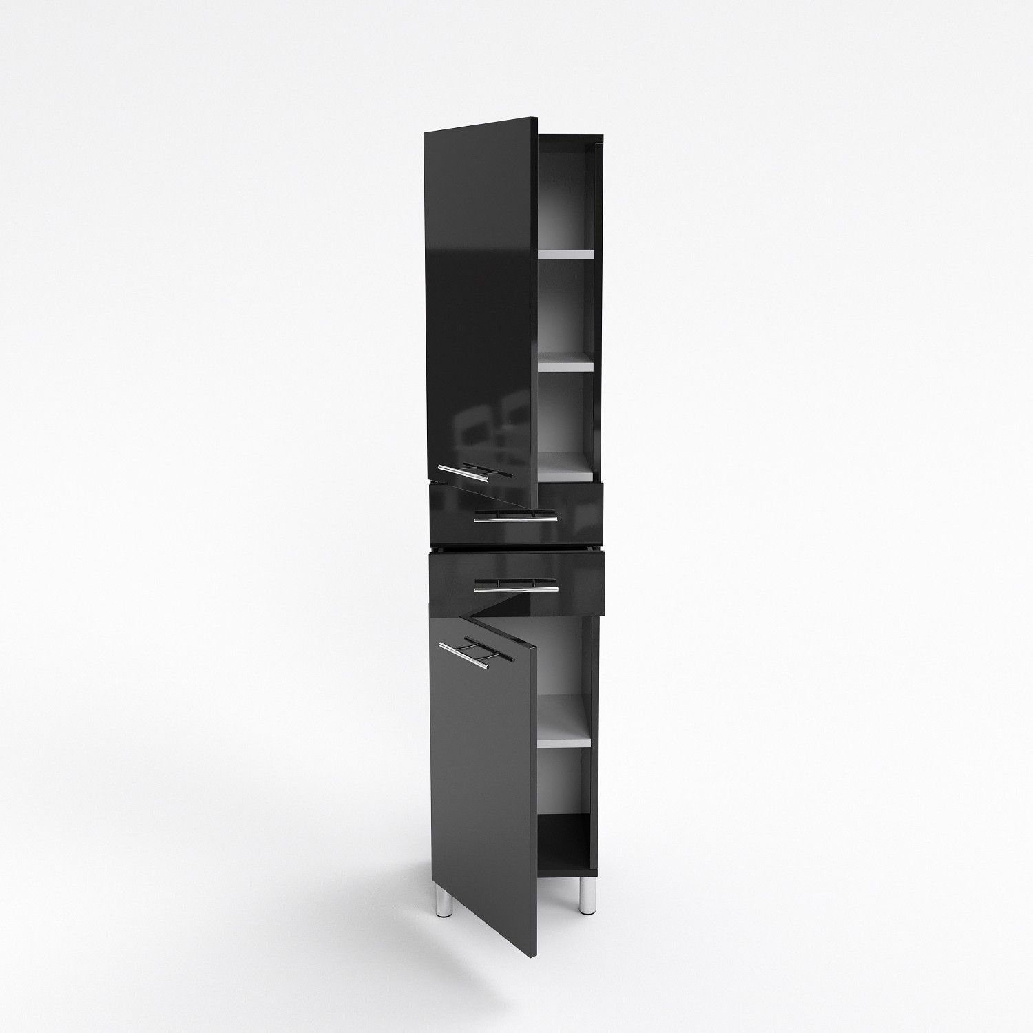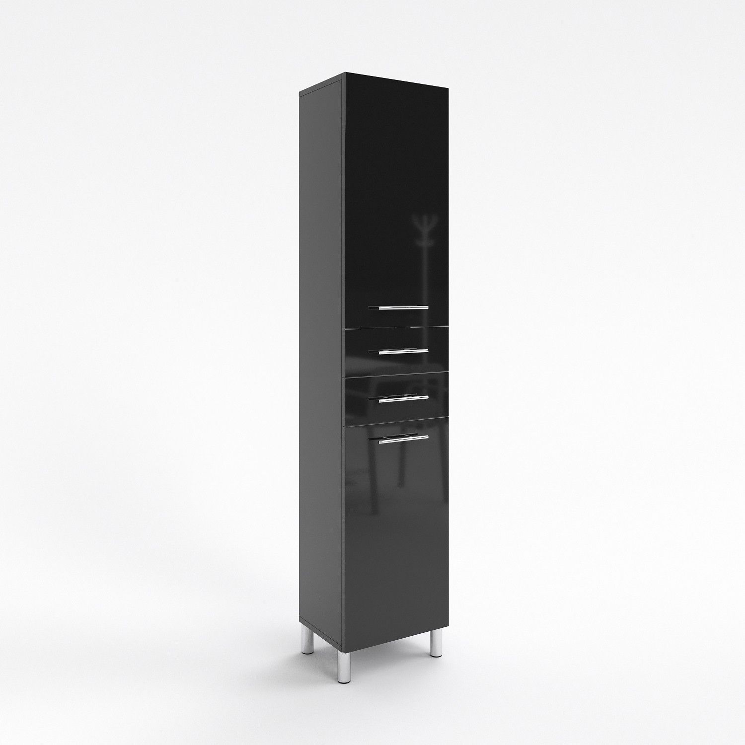 Badezimmerschrank Hochschrank SW13 188x30 cm Schwarz Hochglanz metallgriffe