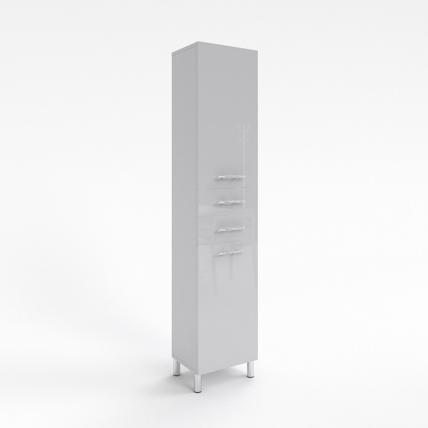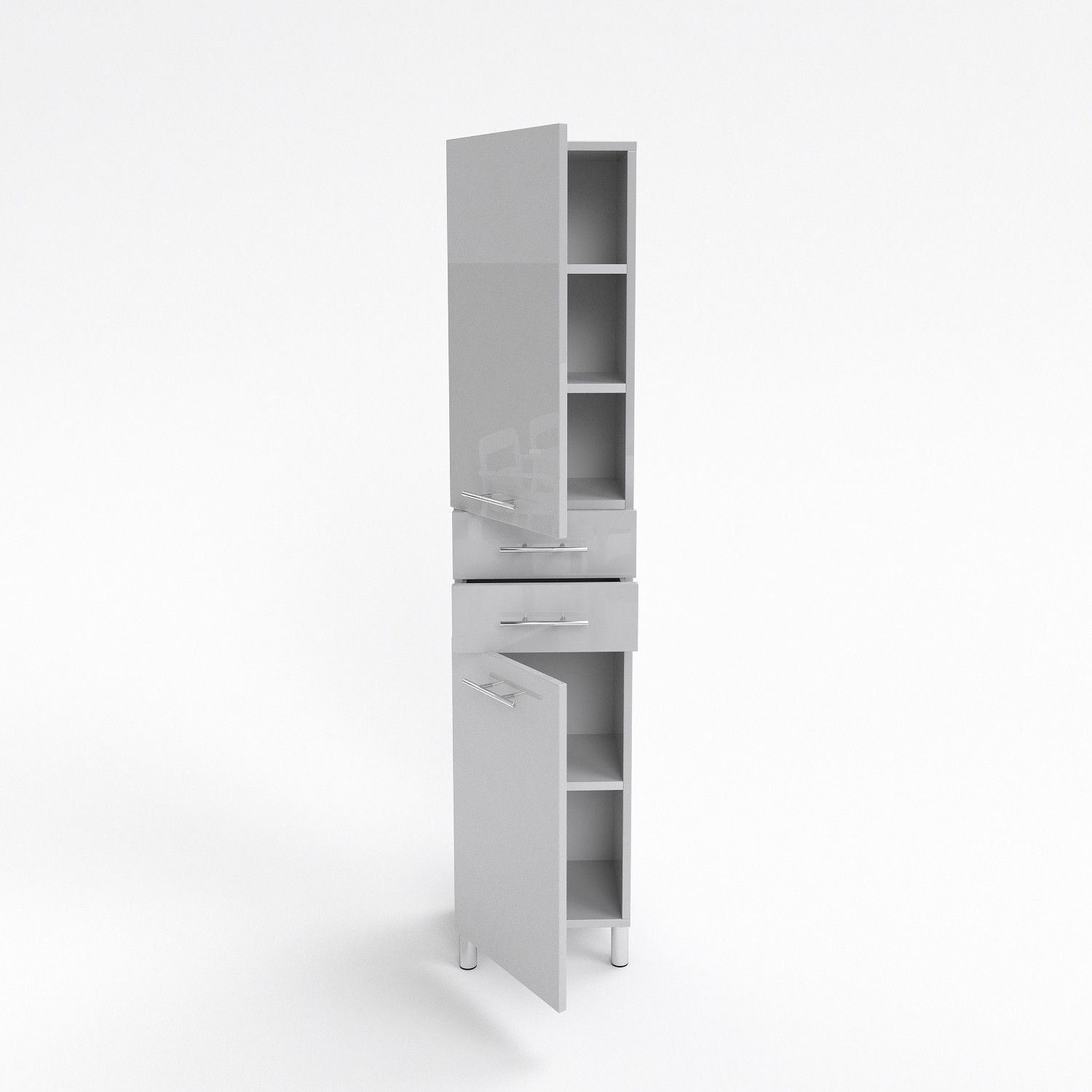 Badezimmerschrank Hochschrank SW13 188x50 cm Weiß Hochglanz metallgriffe