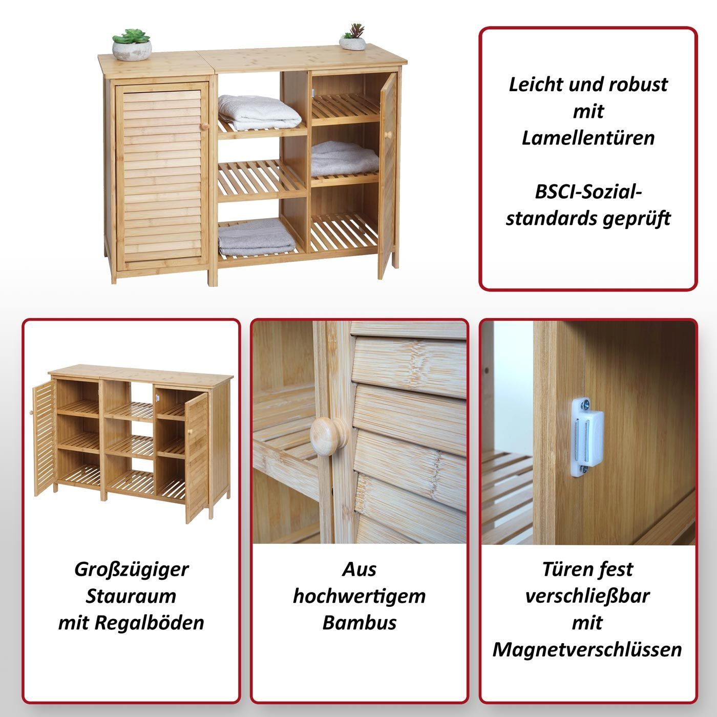 Mendler Badezimmerschrank HWC-B18, Regal Kommode Badschrank, 2 Türen Bambus 75x99x33cm