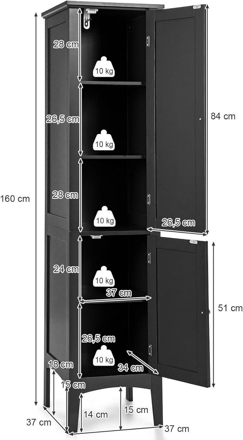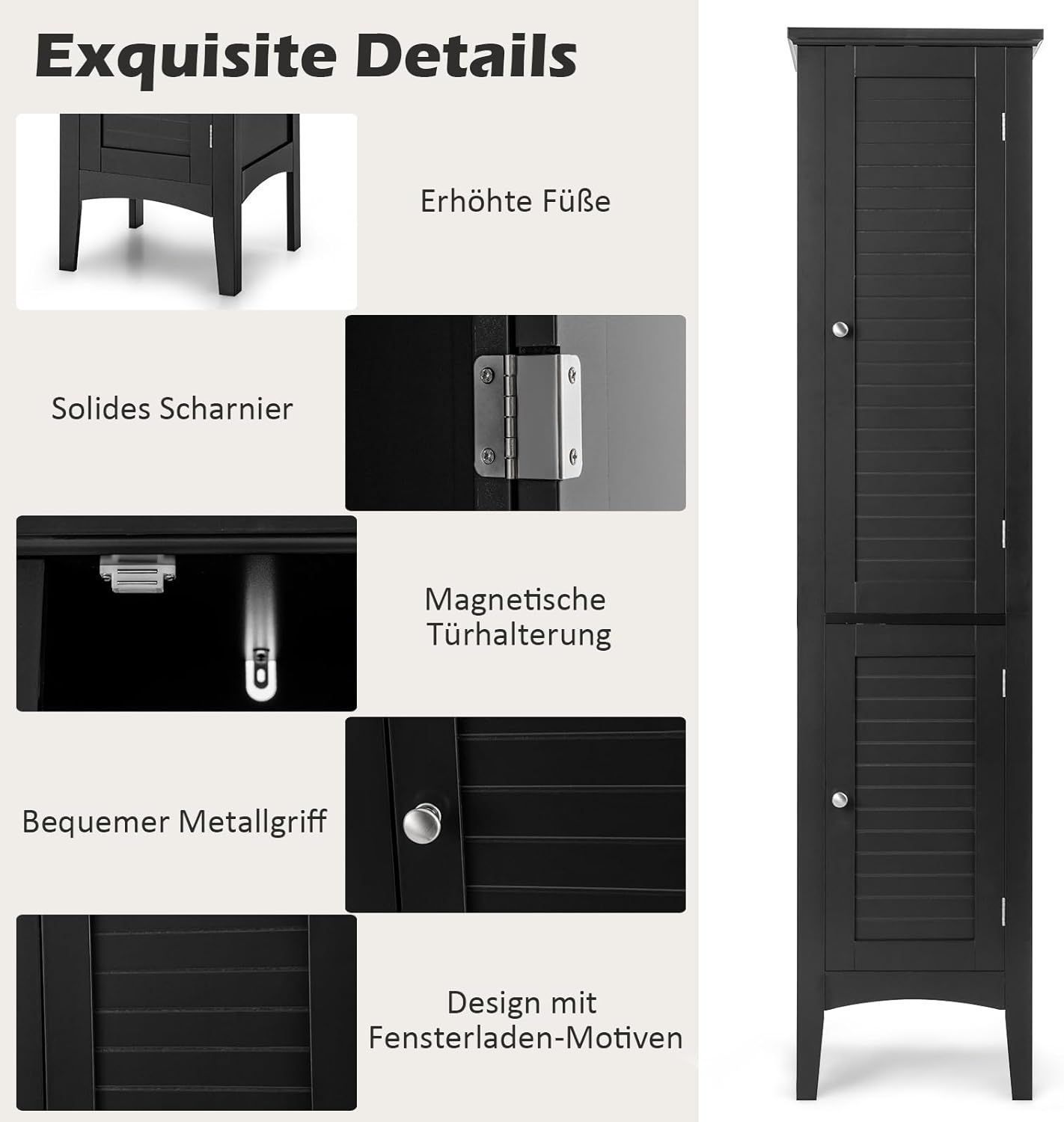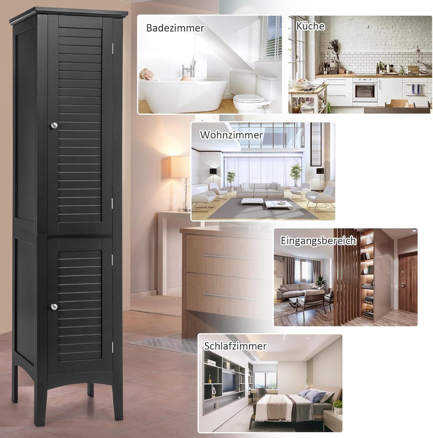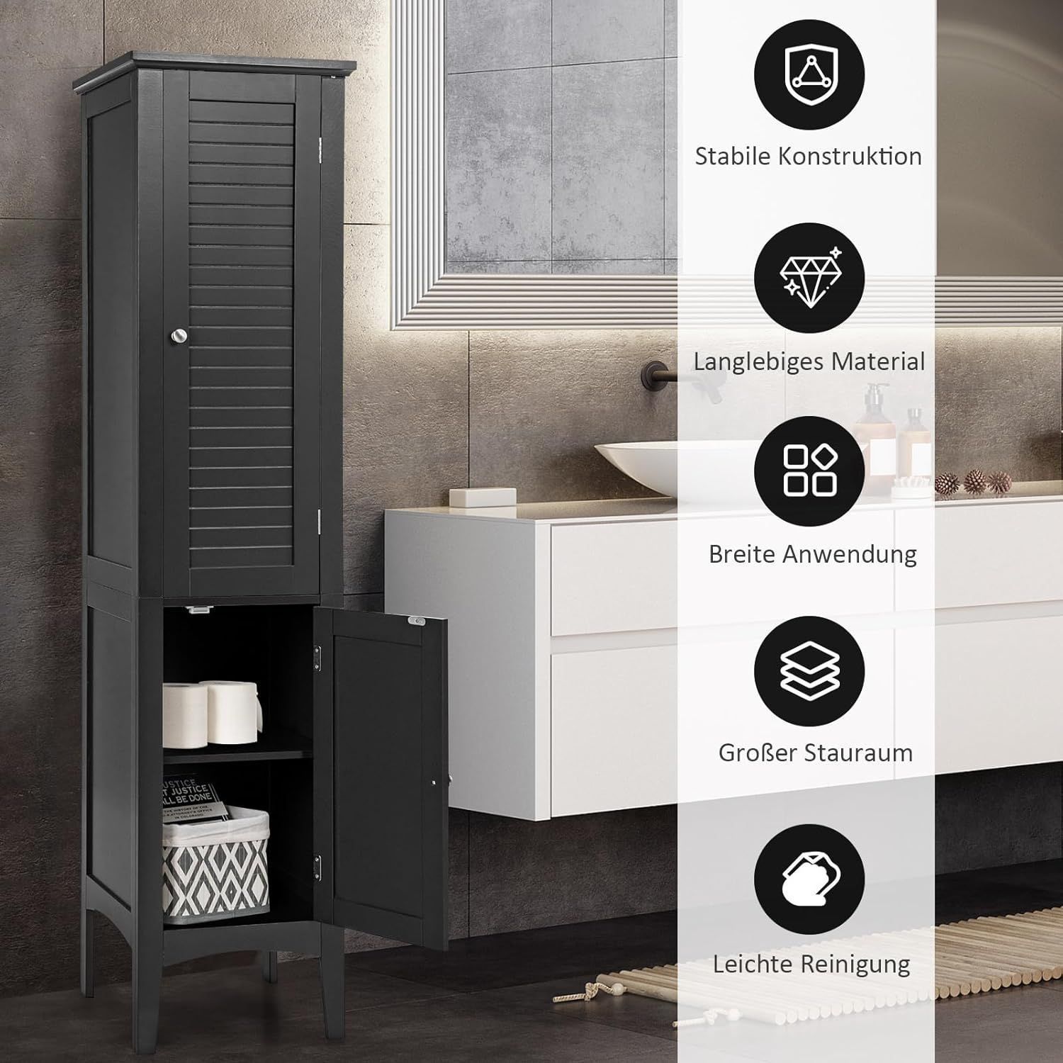 Badezimmerschrank mit 5 Fächern, Badezimmer Hochschrank mit 2 Lamellentür & Regalen