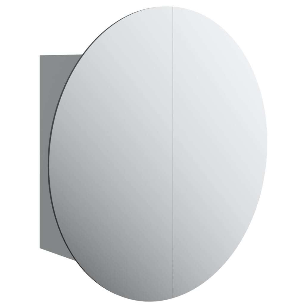 VIDAXL Badezimmerschrank mit Rundem Spiegel & LED Grau 47x47x17,5 cm