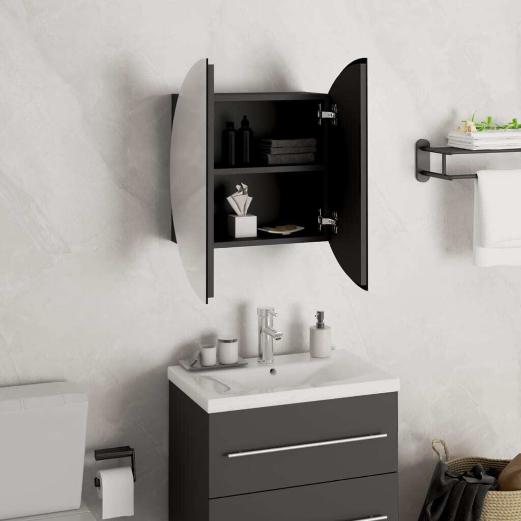 VIDAXL Badezimmerschrank mit Rundem Spiegel & LED Schwarz 40x40x17,5cm