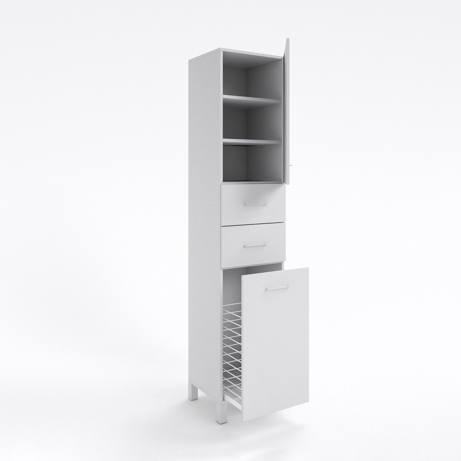 Badezimmerschrank mit Wäschekorb SW155 30,40,50cm Weiß Hochglanz , Matt soft close