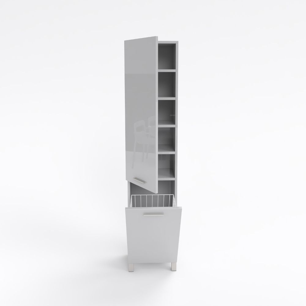 Badezimmerschrank mit Wäschekorb weiß hochglanz SW3 188x30 cm