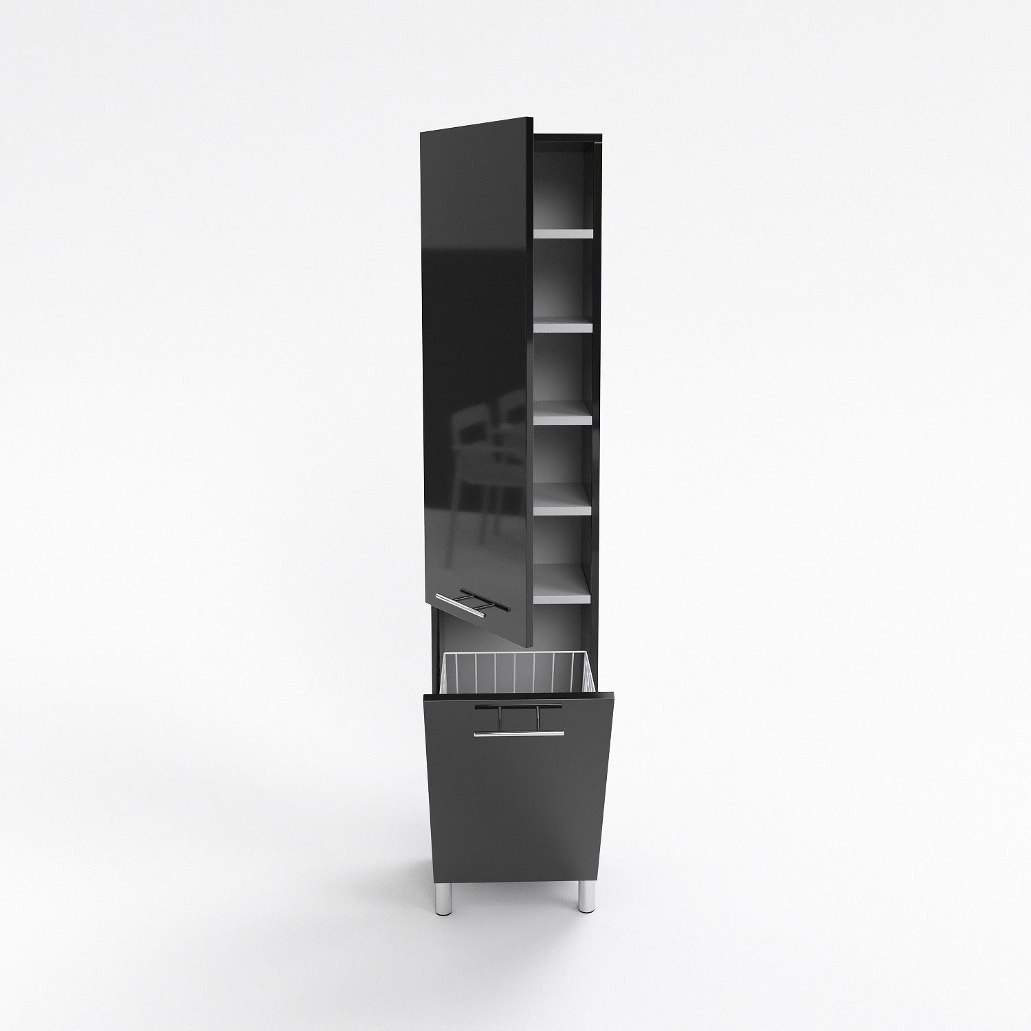 Badezimmerschrank mit Wäschekorb weiß oder schwarz hochglanz SW3 50 cm metallgriff