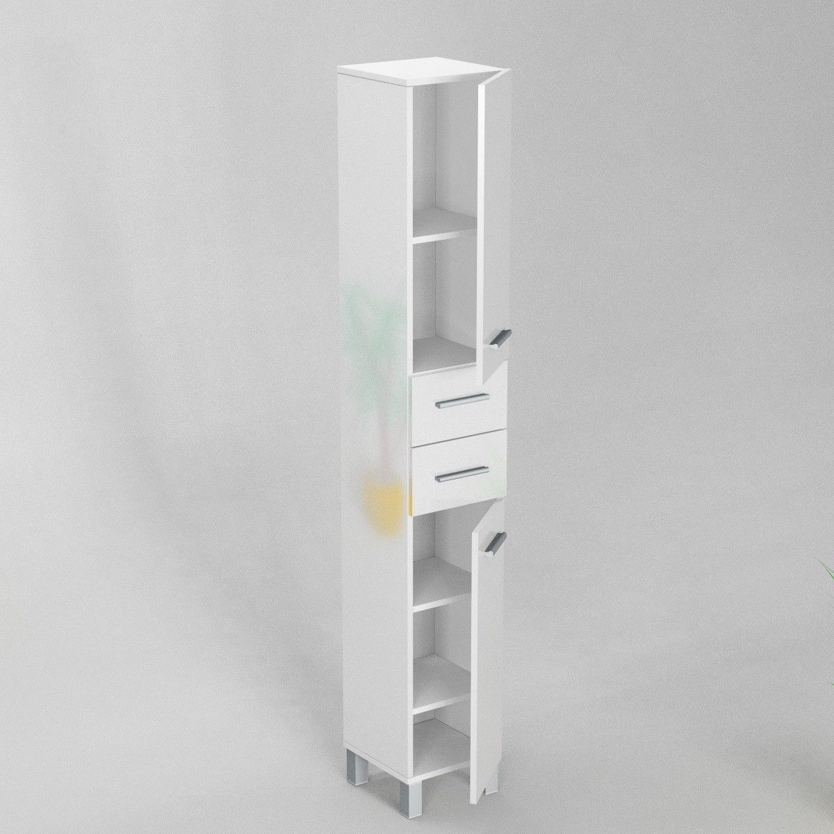 Badezimmerschrank SW13 188x40 cm Weiß hochglanz soft close