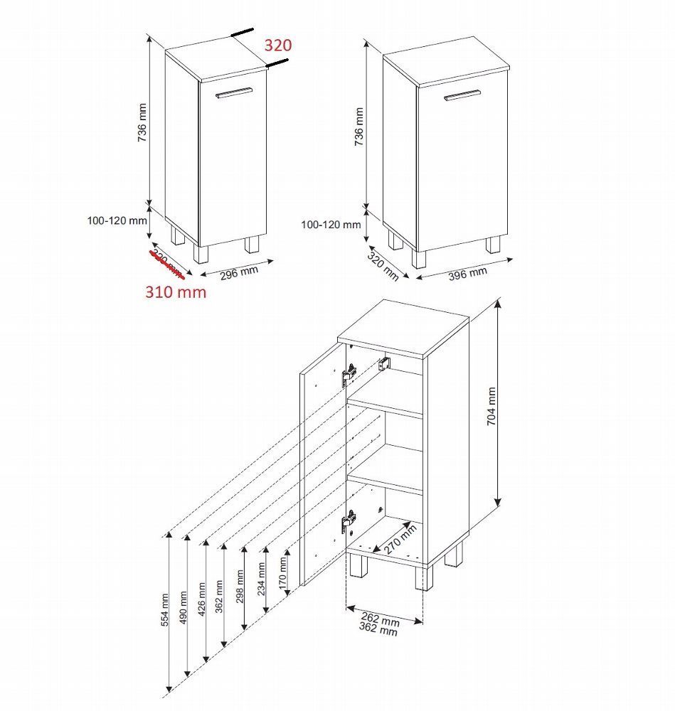 Badezimmerschrank/ Unterschrank SN 2 30,40cm / Weiß- Hochglanz oder Matt
