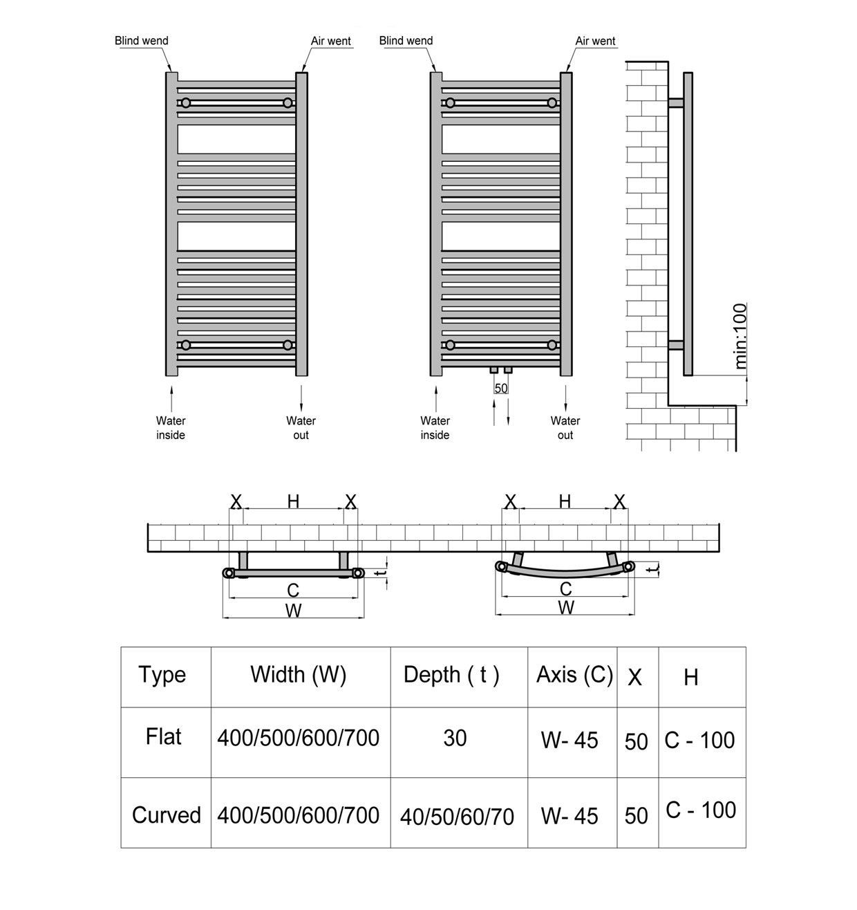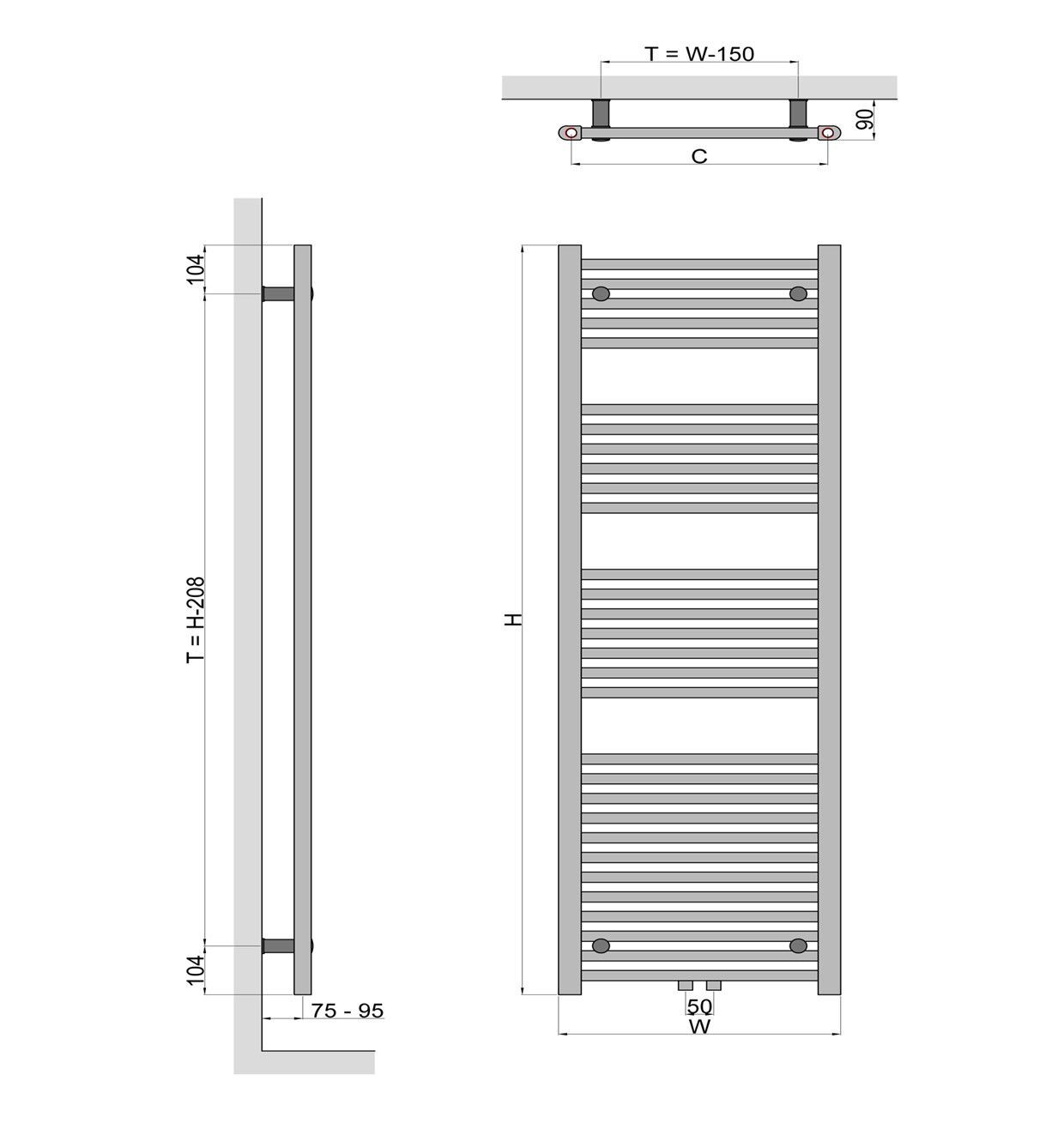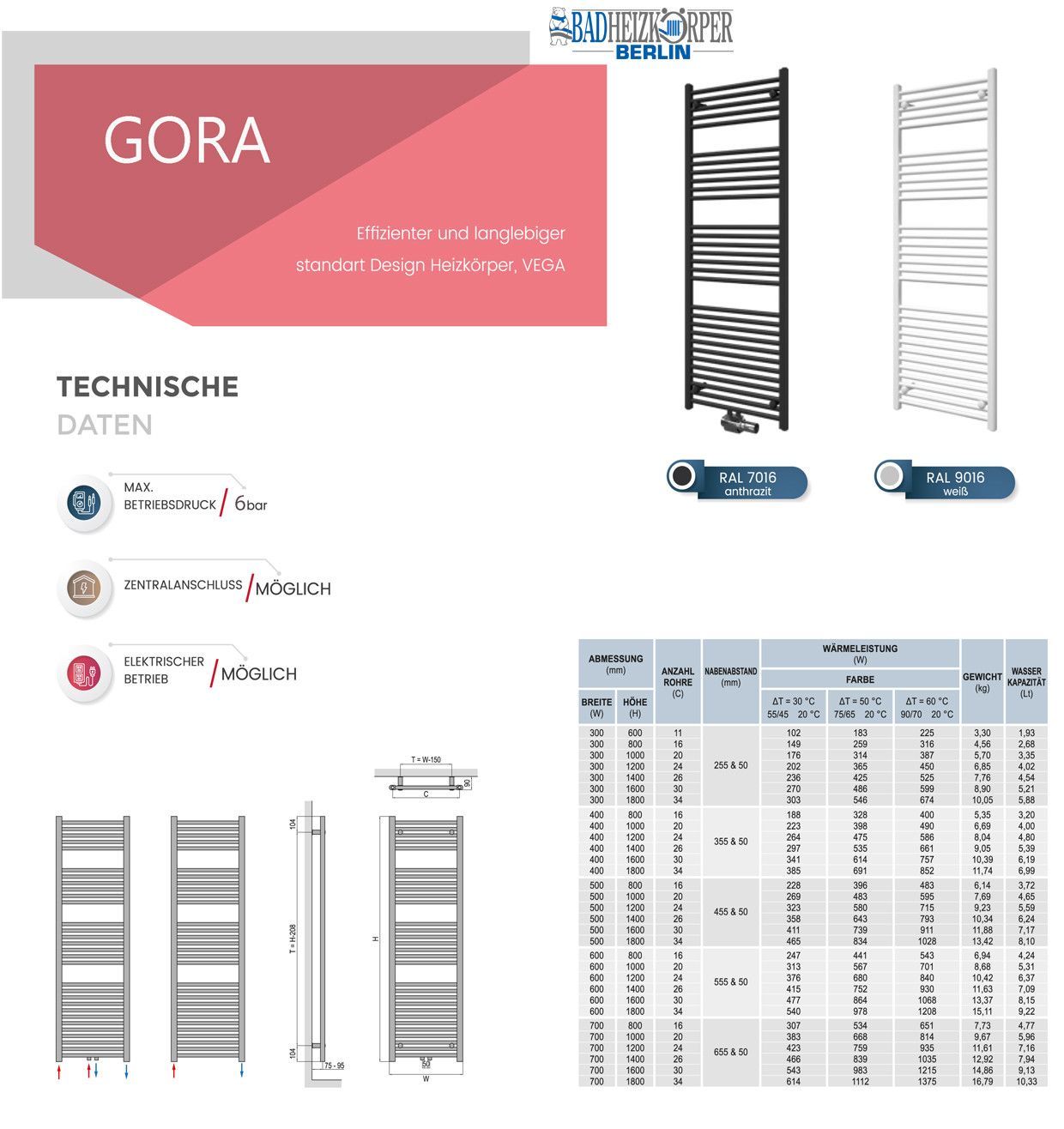 Badheizkörper GORA Grau Anthrazit mit Mittelanschluss Gerade alle Maßen