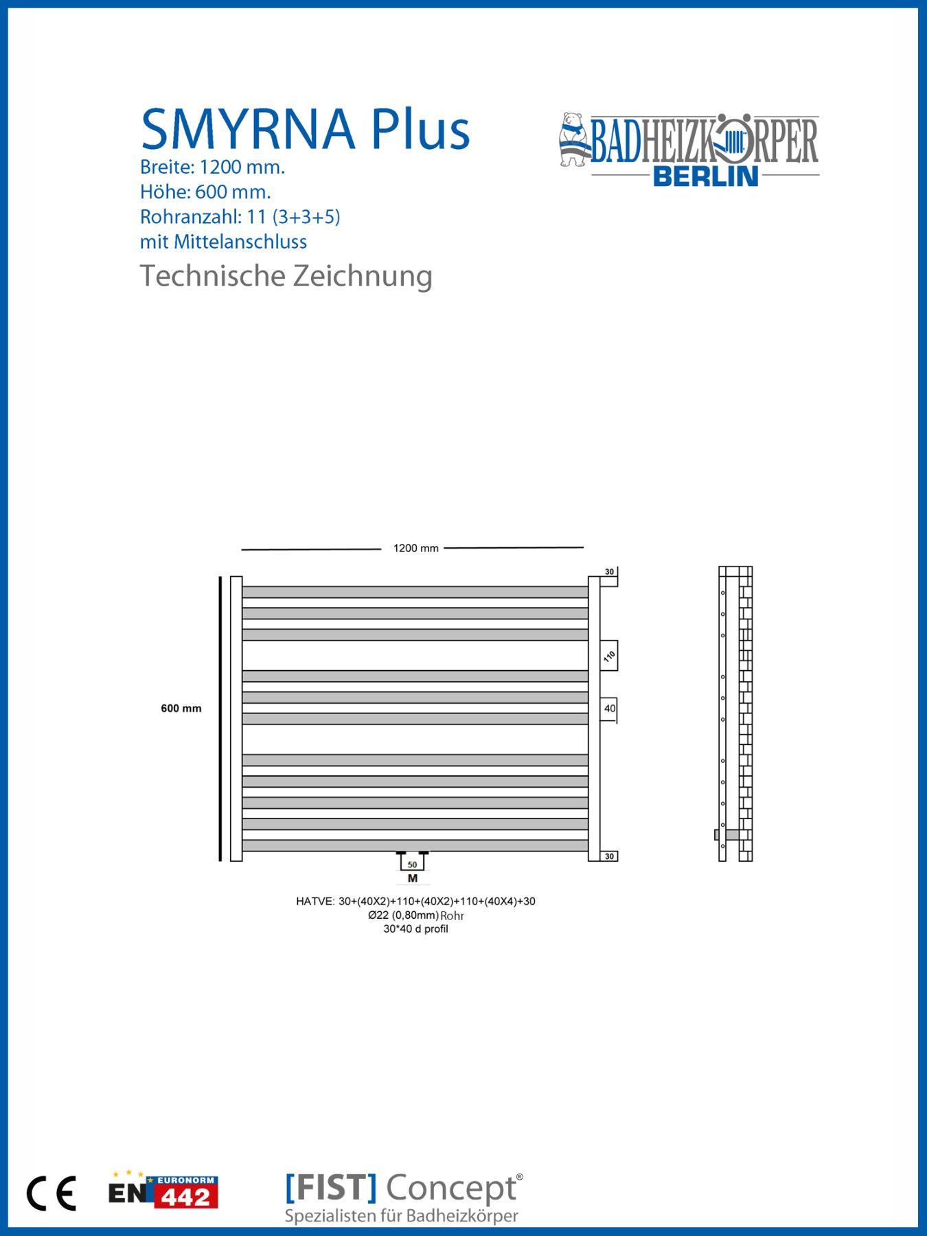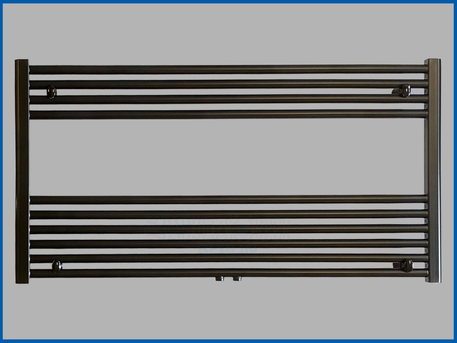 Badheizkörper SMYRNA PLUS Schwarz Matt 1200 x 600 mm. Gerade mit Mittelanschluss