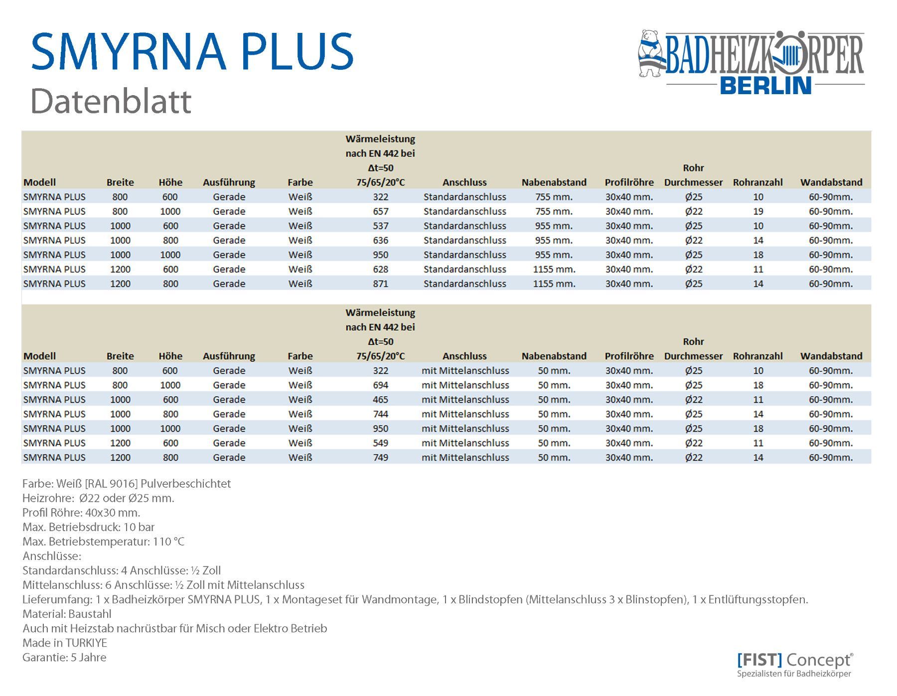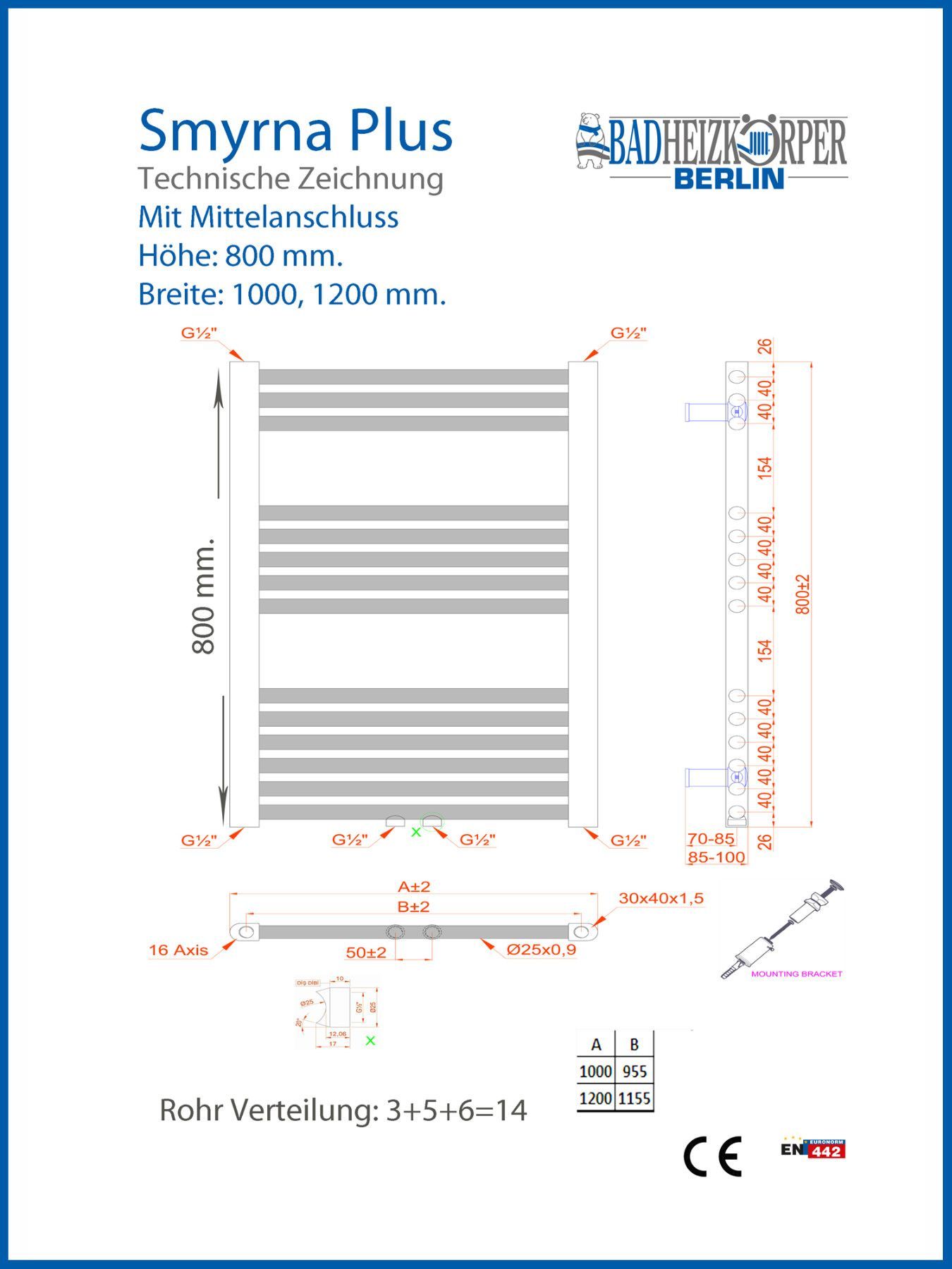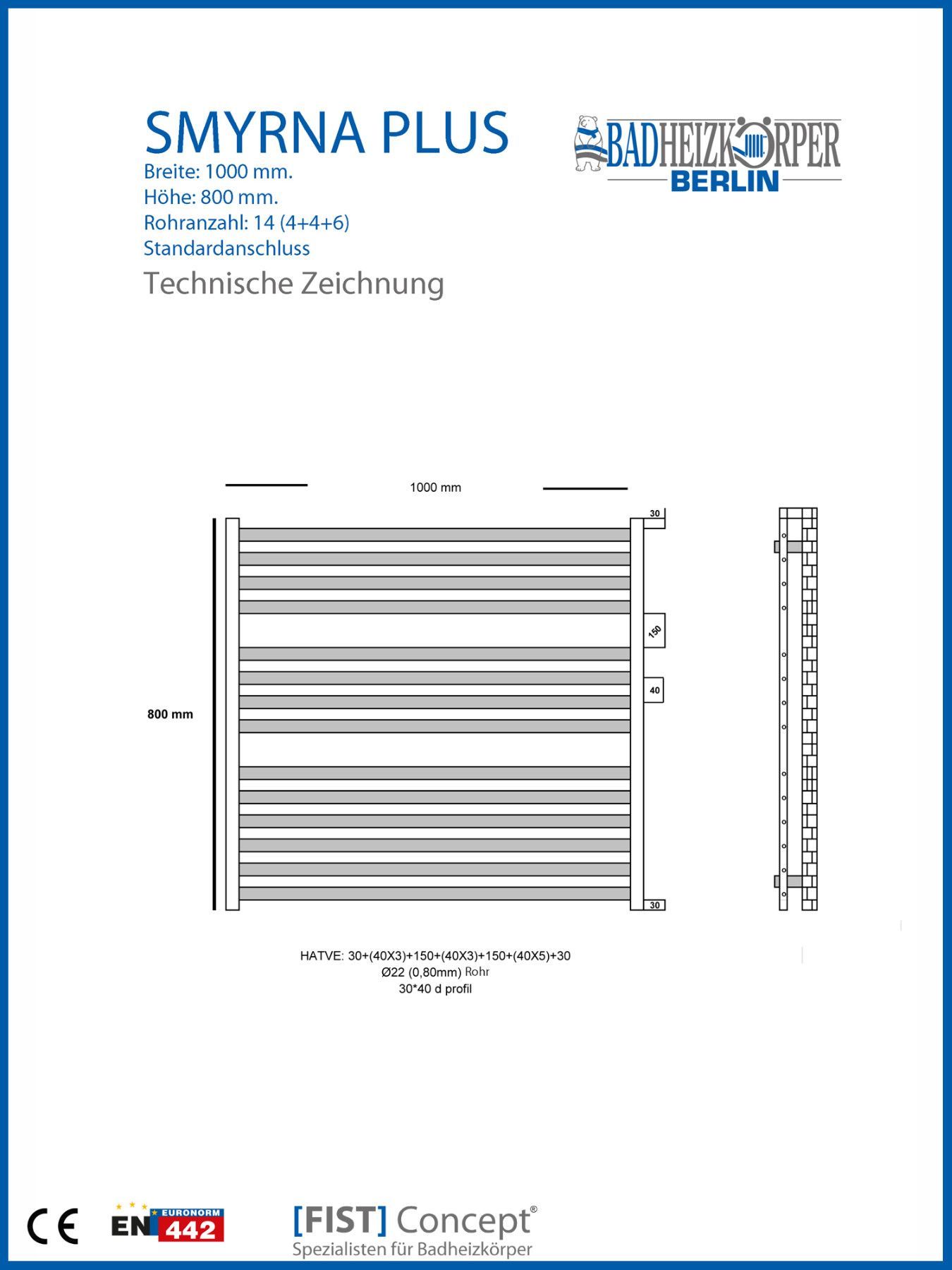 Badheizkörper SMYRNA Plus Weiß Breite: 1000 mm. Höhe: 800 mm. Standard / Mittel