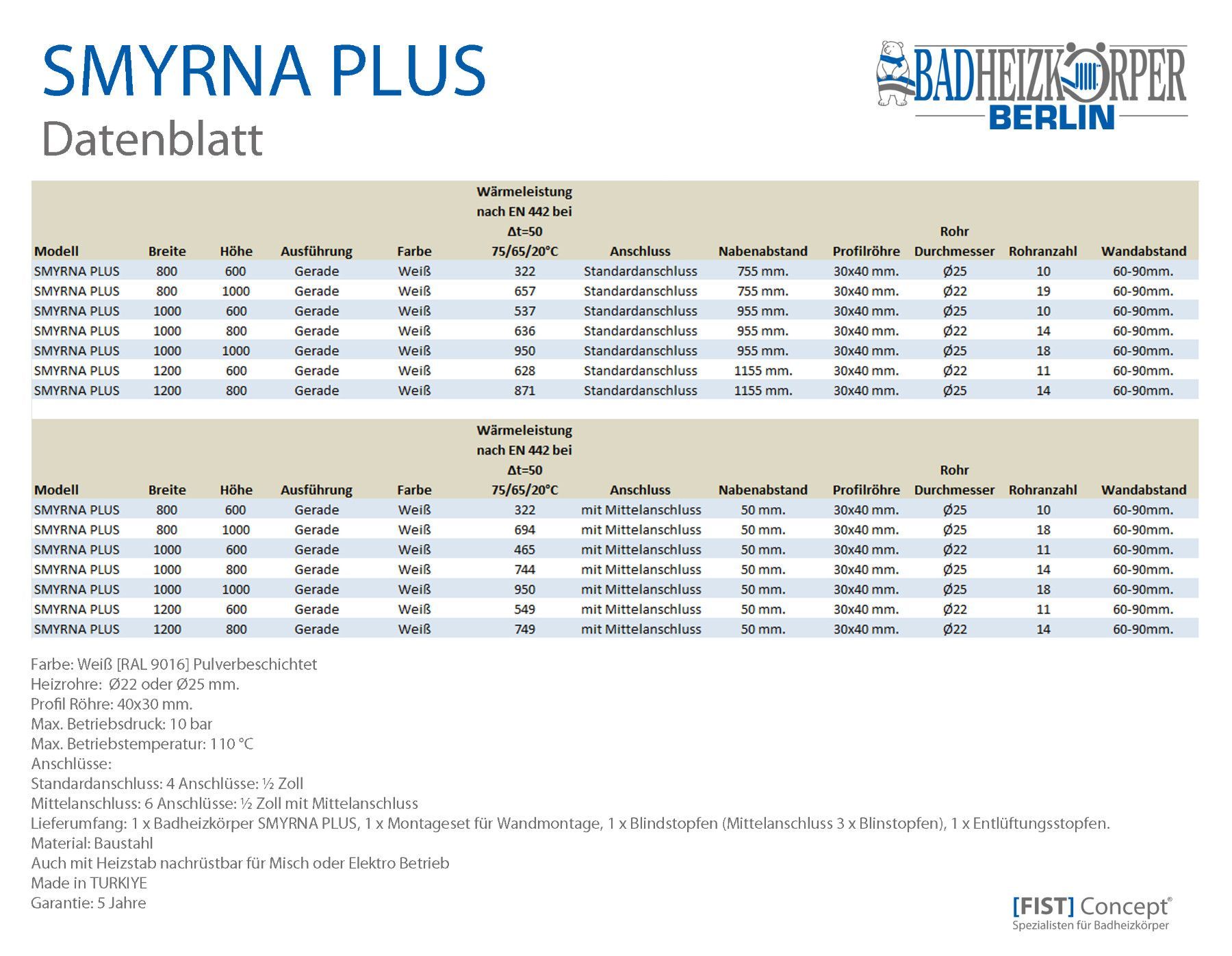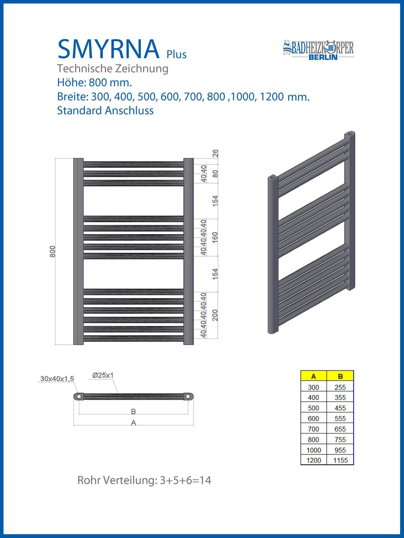 Badheizkörper SMYRNA Plus Weiß Breite: 1200 mm. Höhe: 800 mm. Standard / Mittel