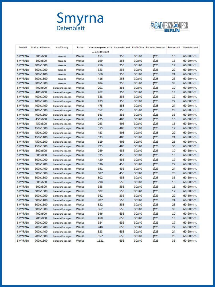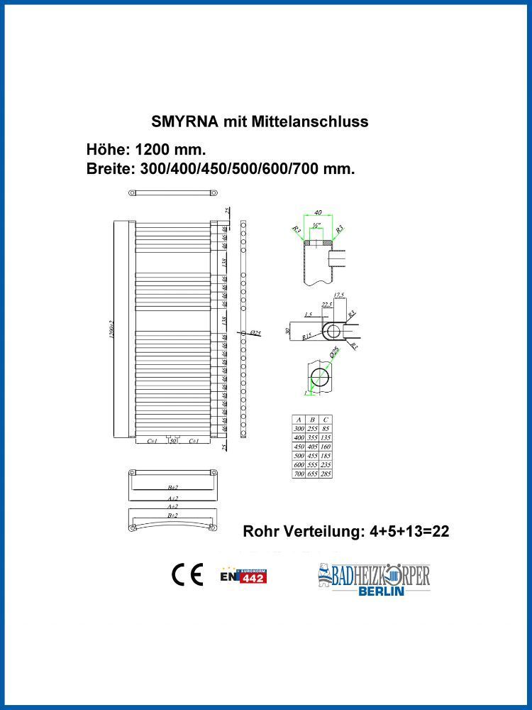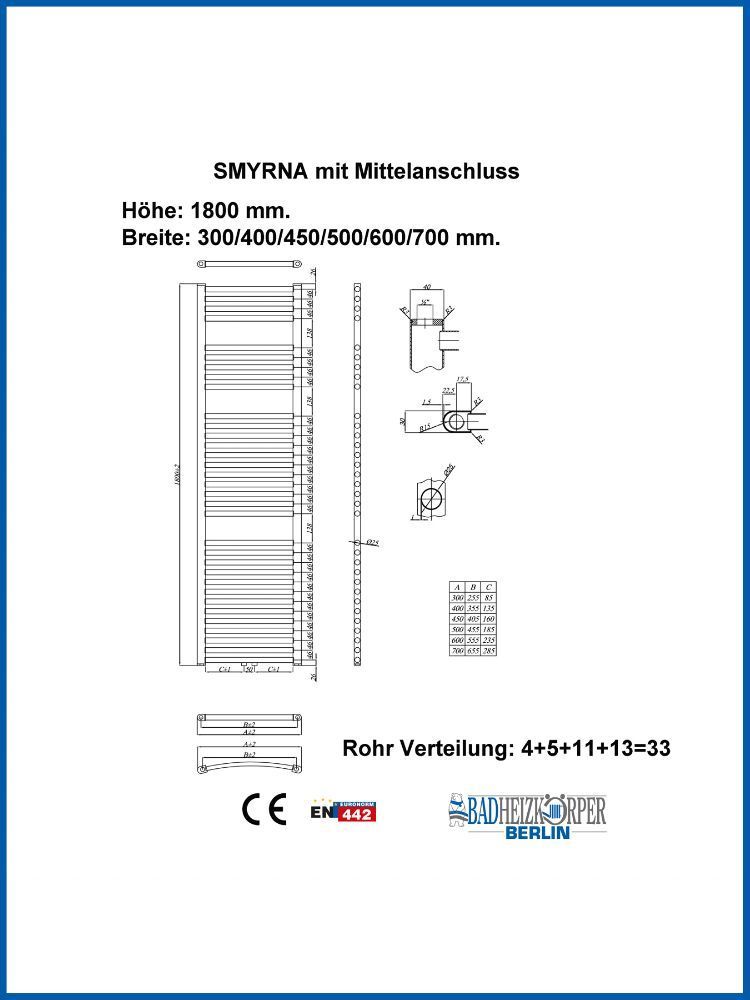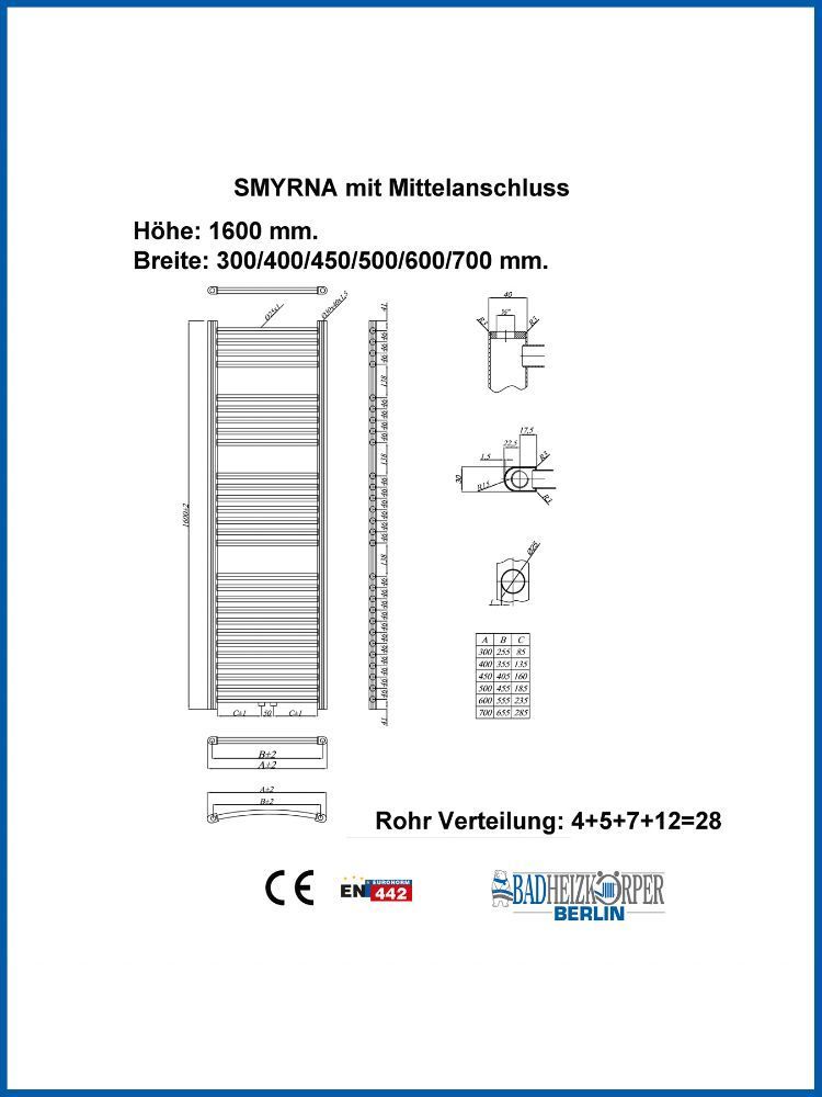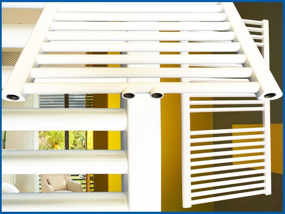 Badheizkörper SMYRNA Weiß mit Mittelanschluss Gerade / Gebogen alle Maßen