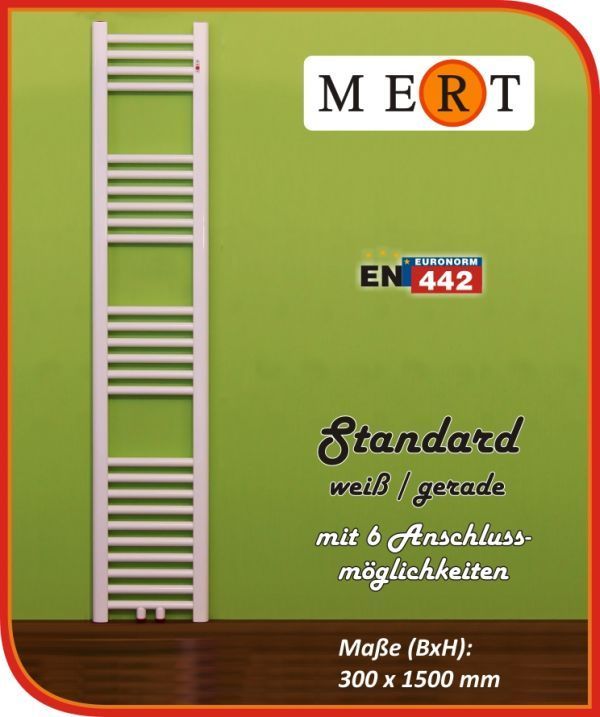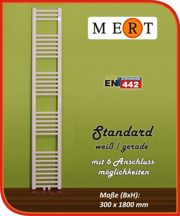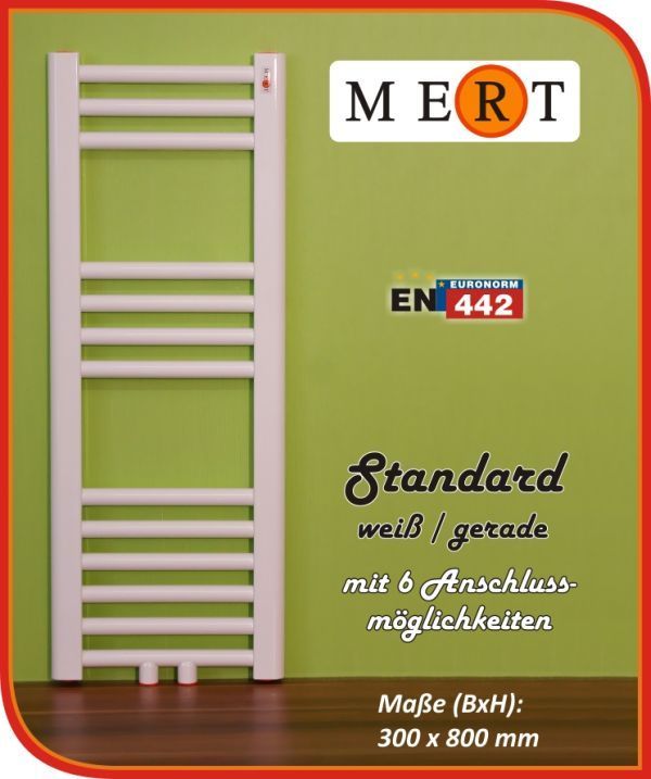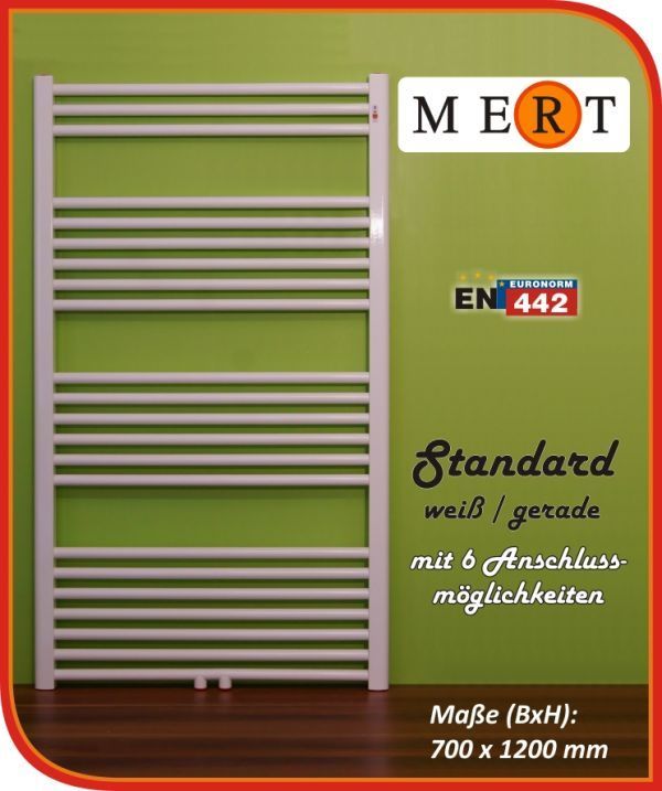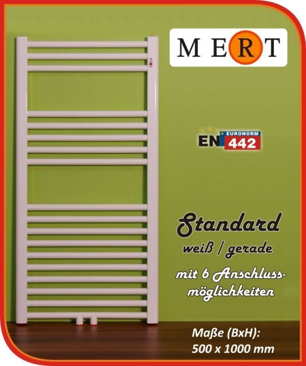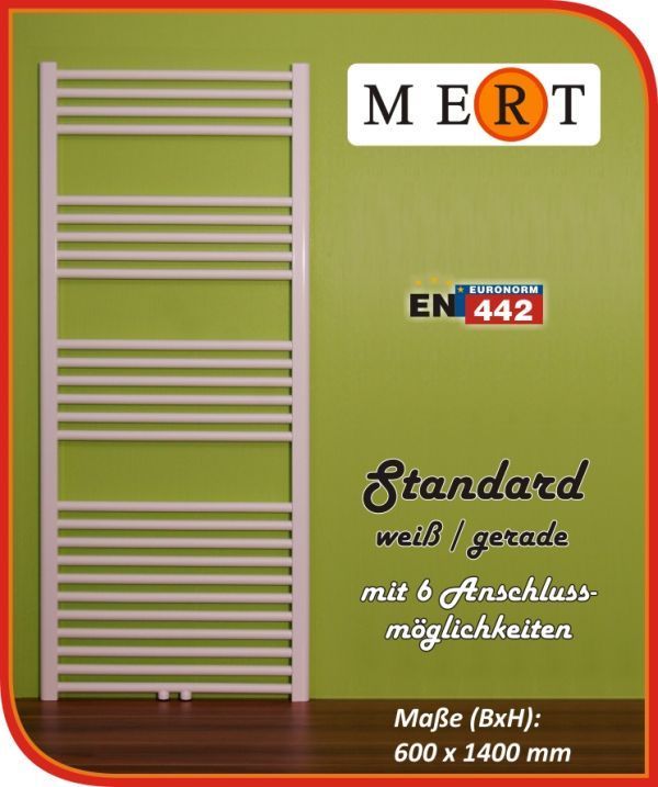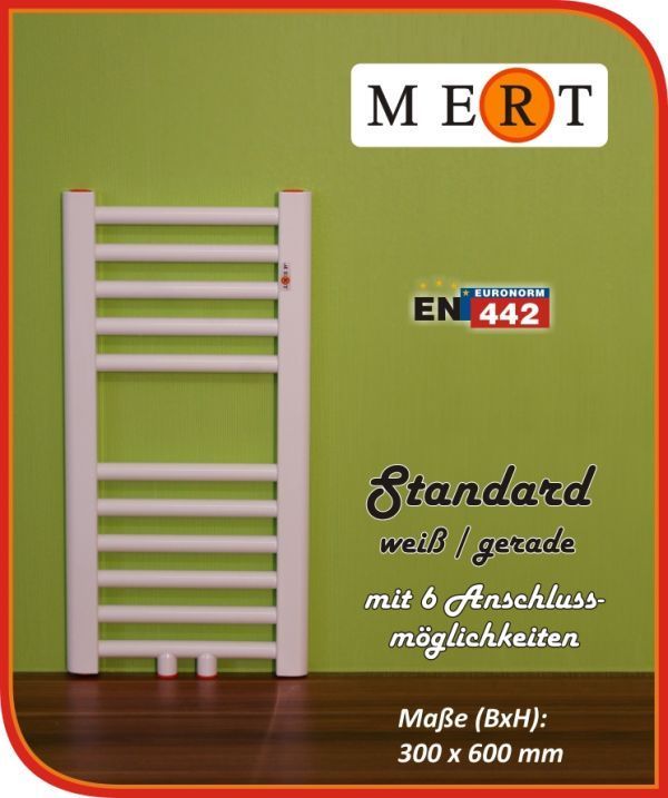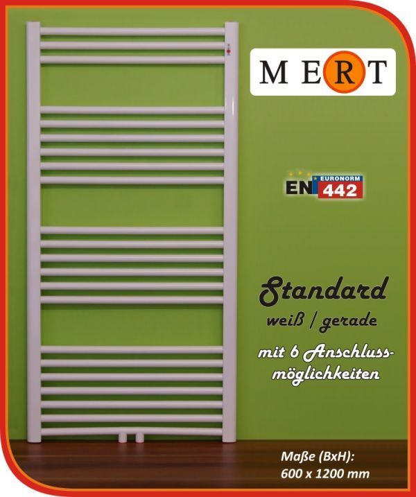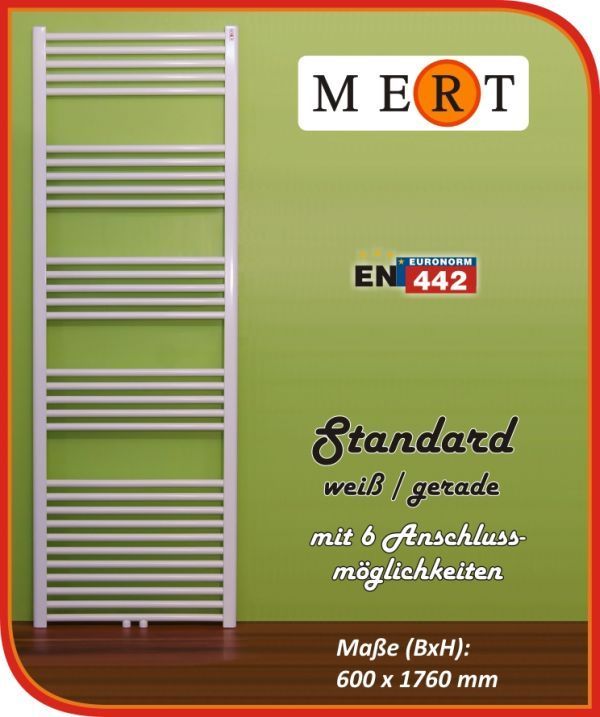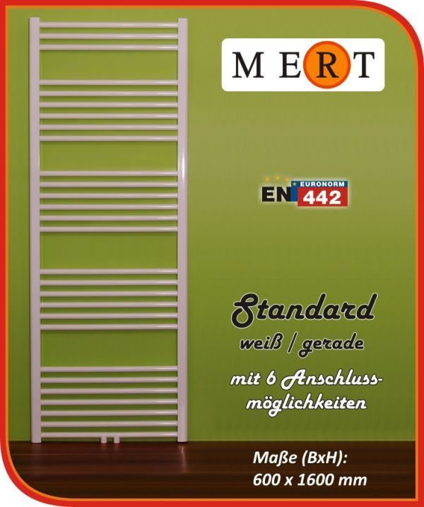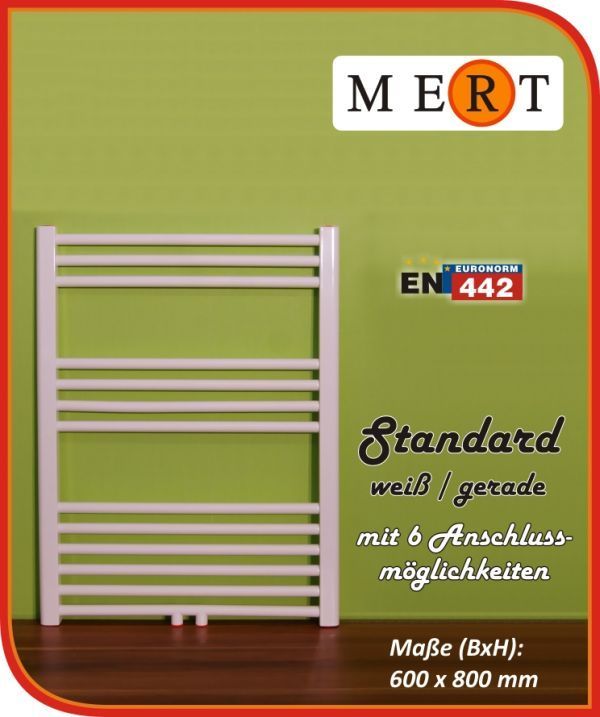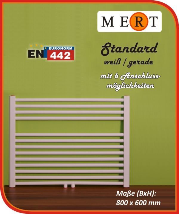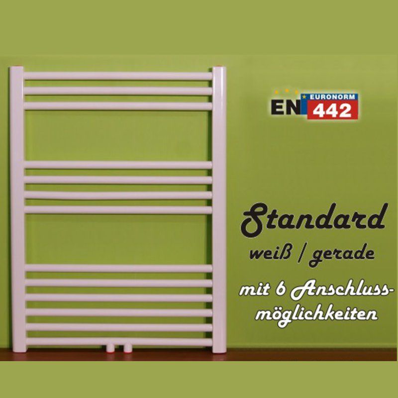 Badheizkörper Standard gerade Form, mit Mittelanschluss und Seitenanschluss