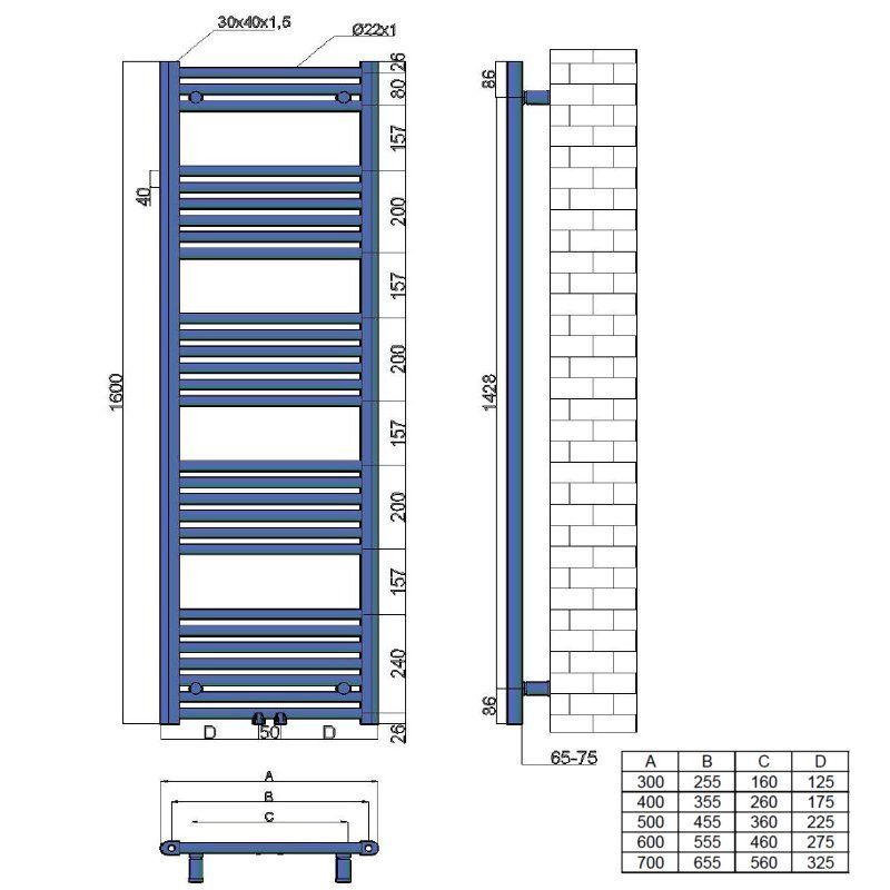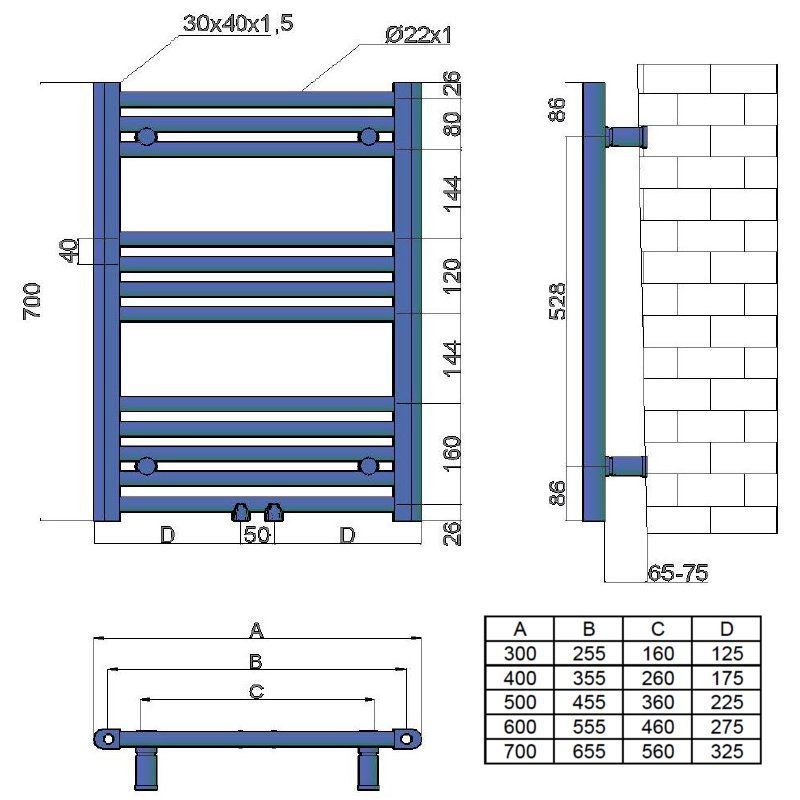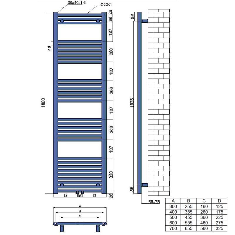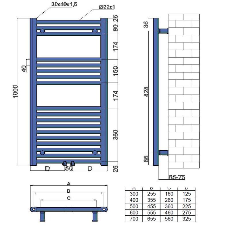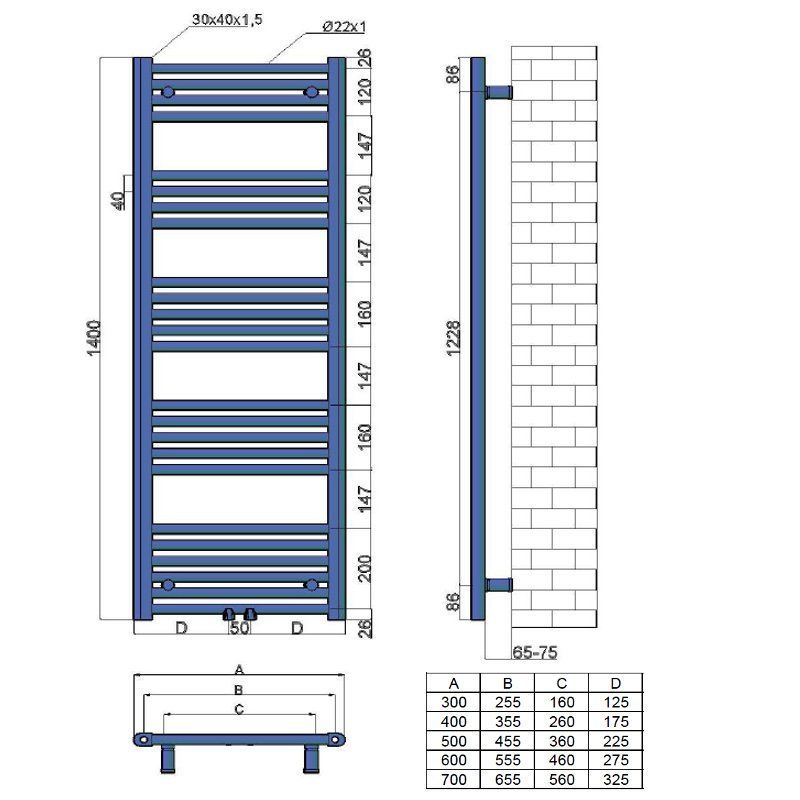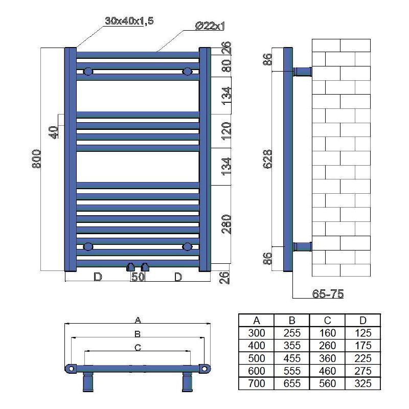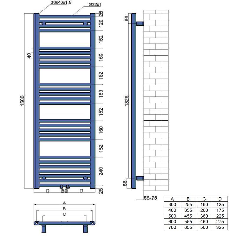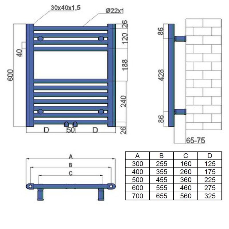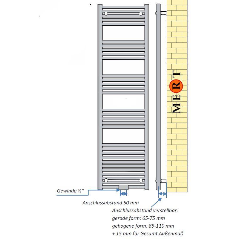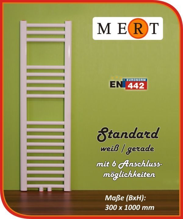 Badheizkörper Standard gerade Form, mit Mittelanschluss und Seitenanschluss