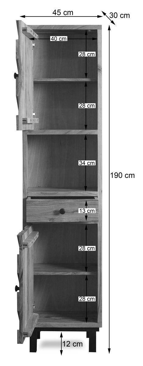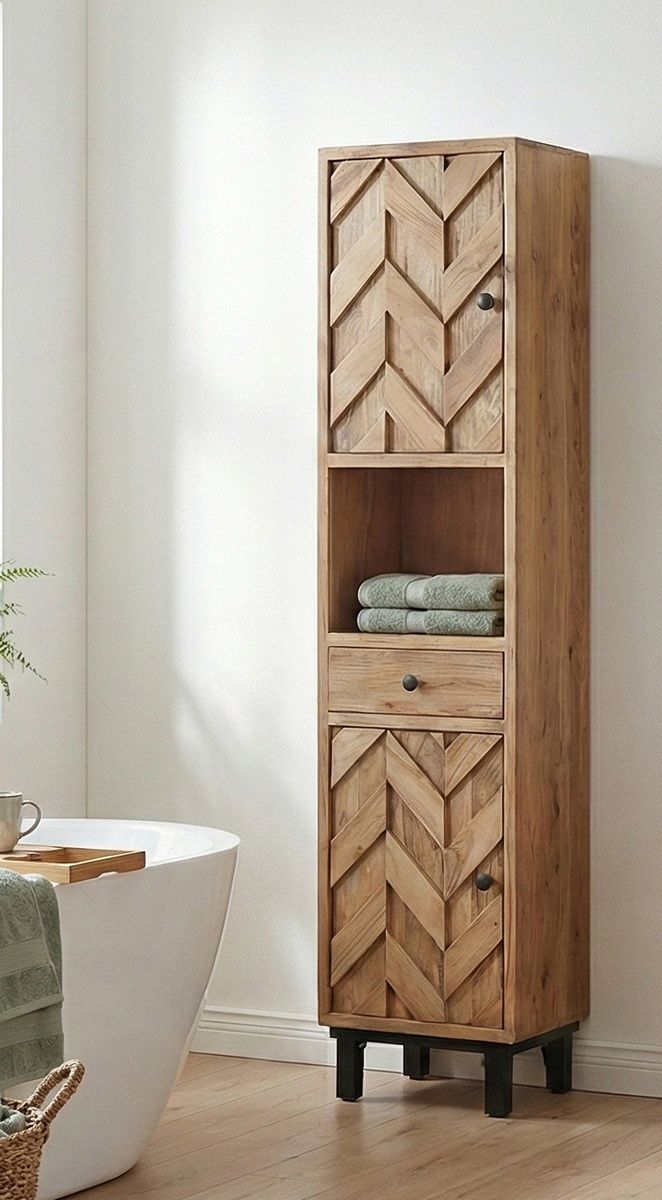Badhochschrank 45x190cm 'Ontario' Akazie massiv