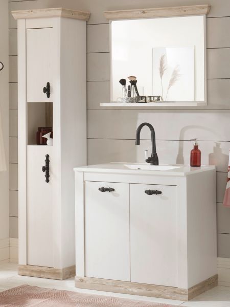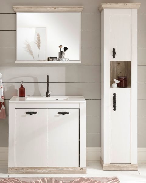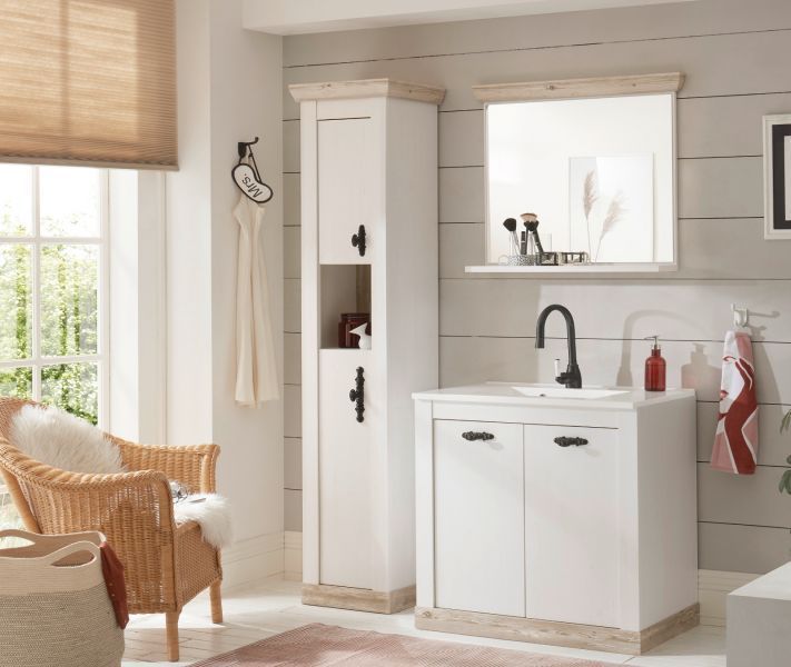 Badkombination Rovola in Pinie weiß Badmöbel Set 4-tlg MIT Waschbecken 143 x 200 cm