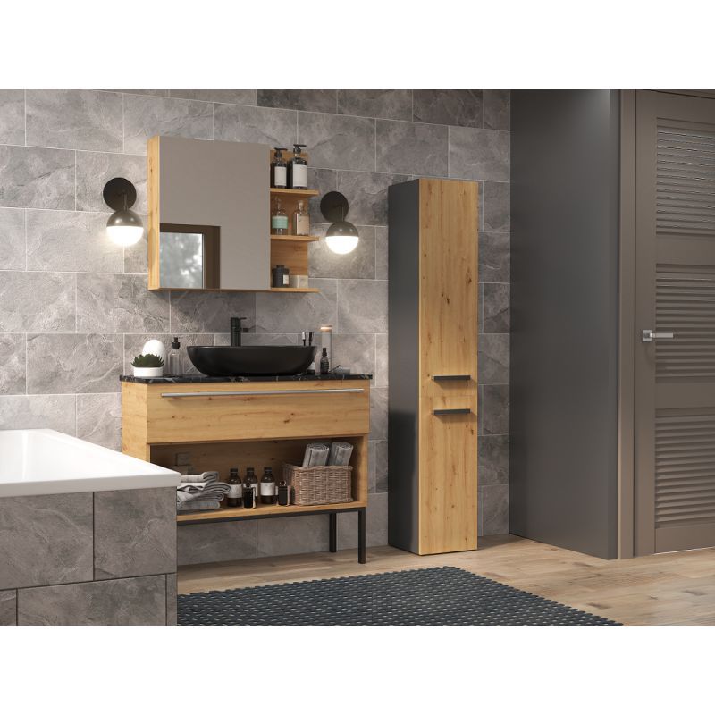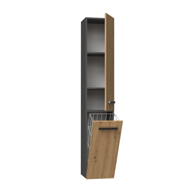 Badmöbel, Badezimmerschrank Bagnoli SLIM in Anthrazit & Artisan Eiche