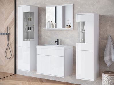 • Badmöbel Badezimmer Set Bad komplett MIT Waschbecken weiß Hochglanz Dense