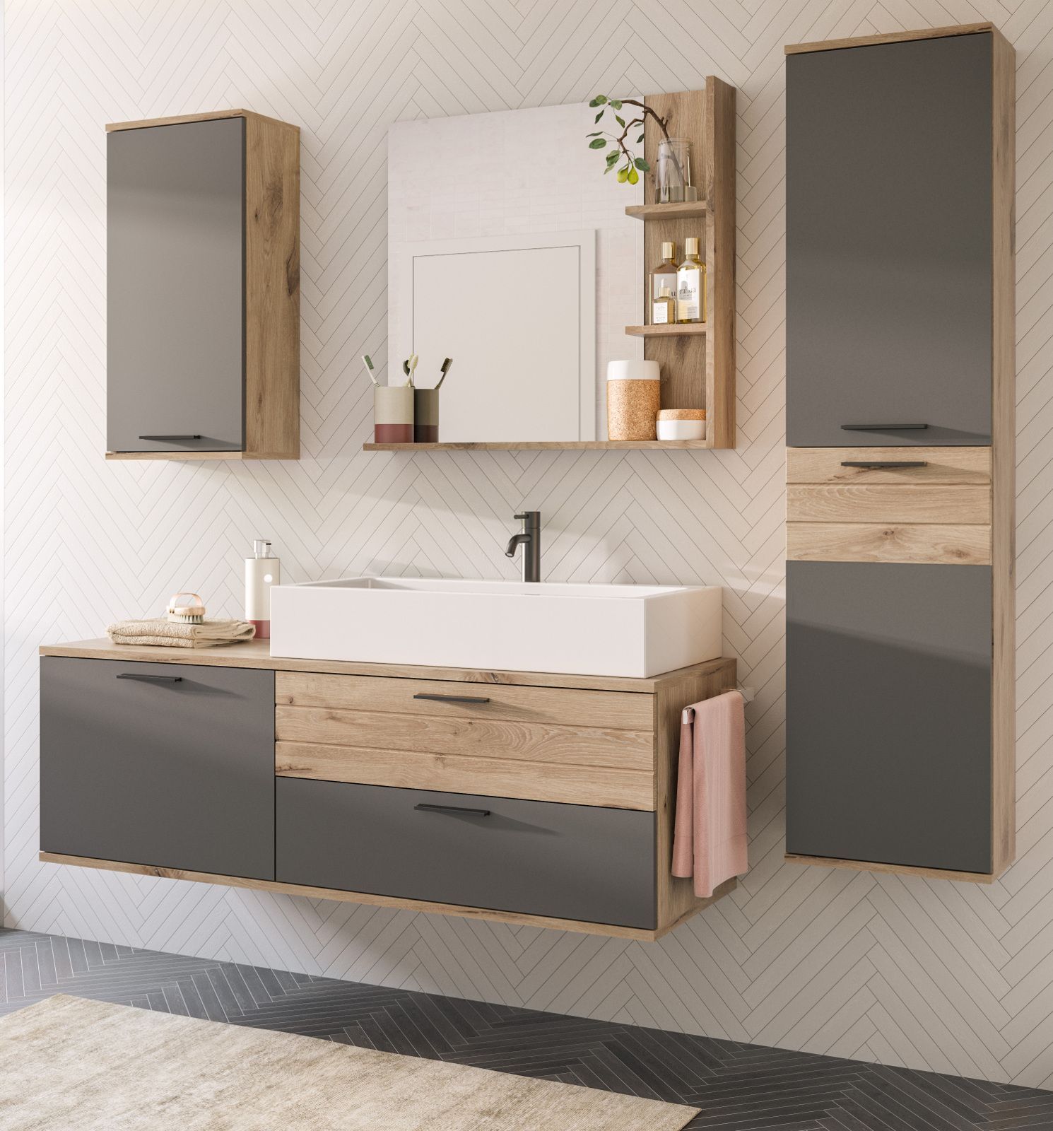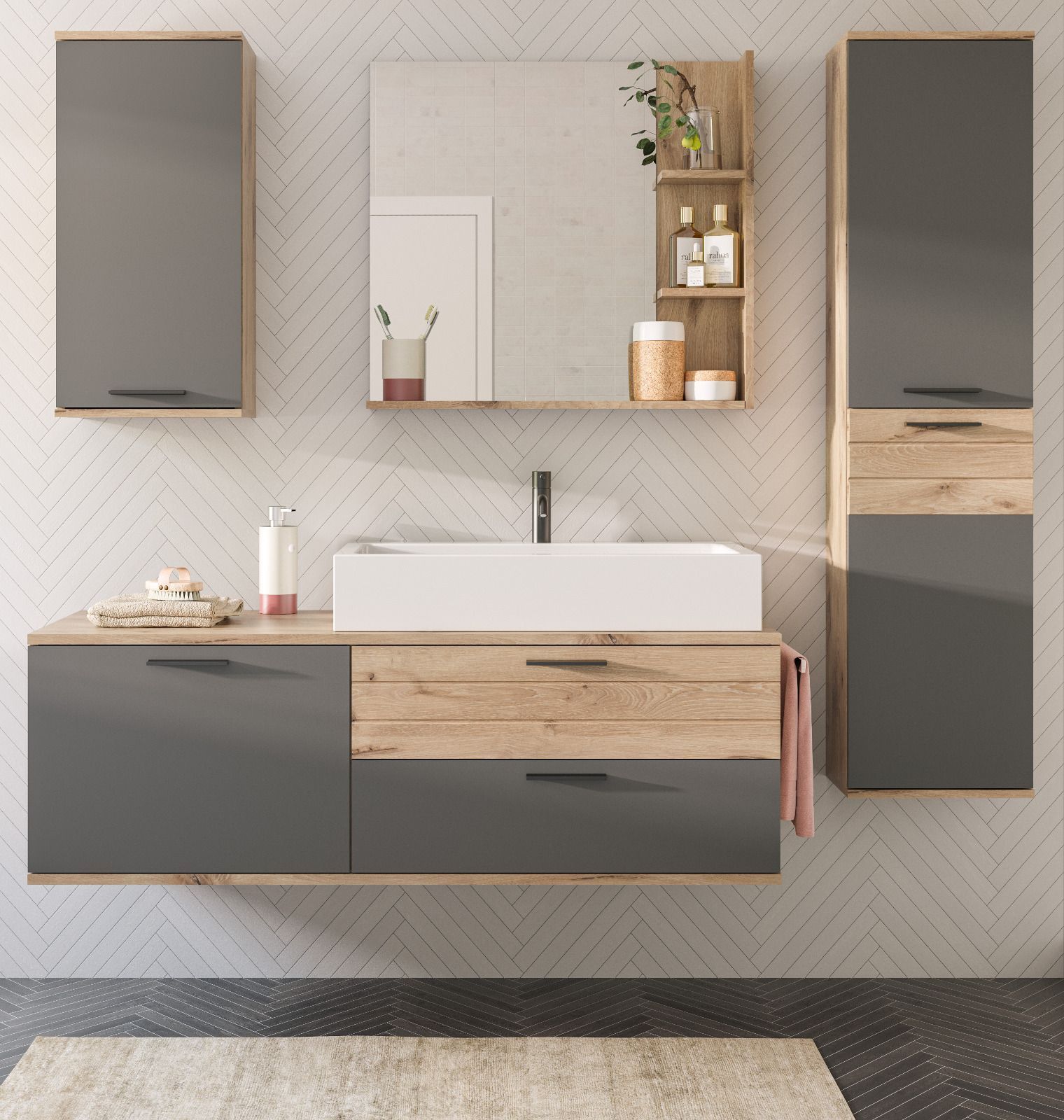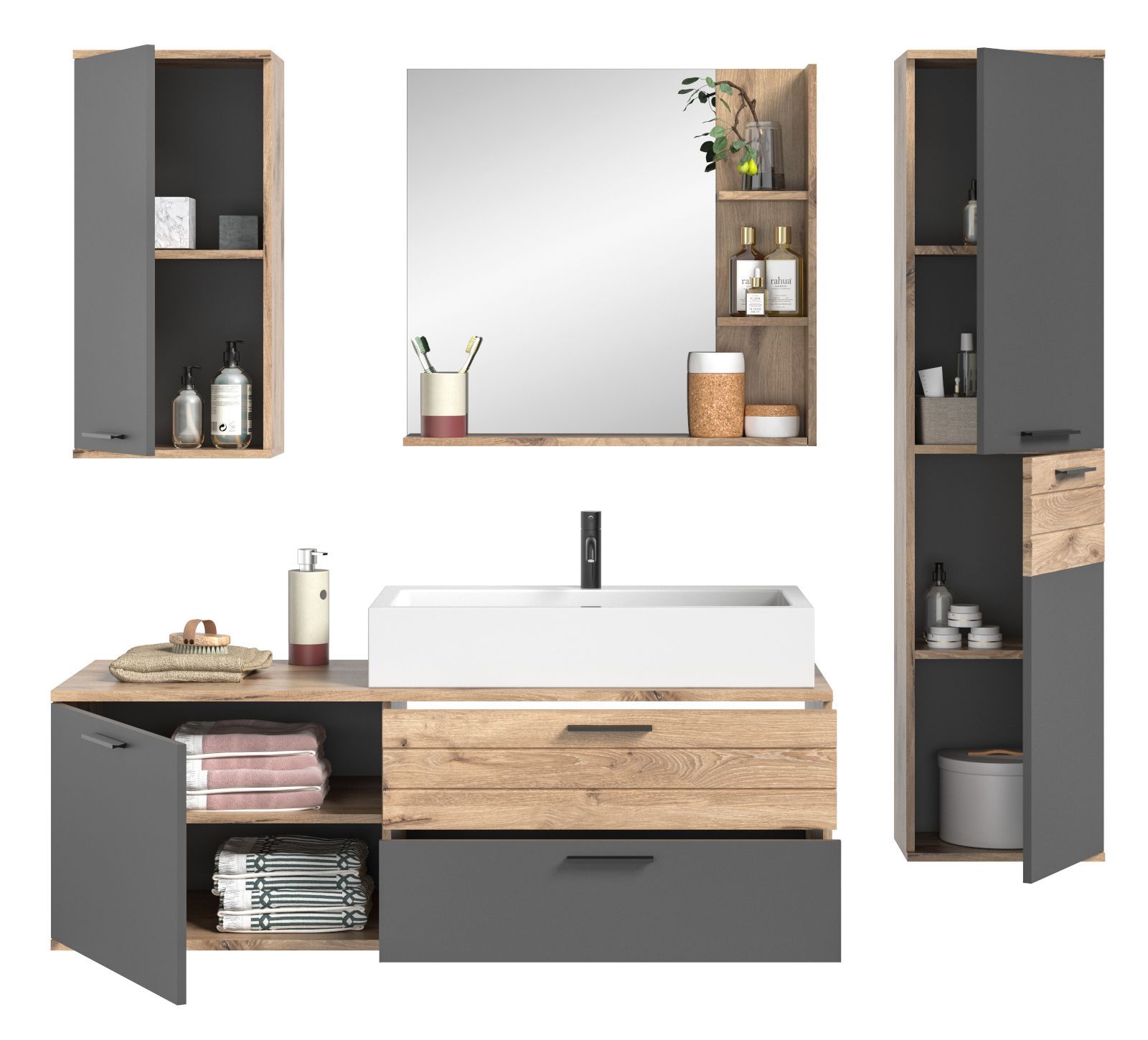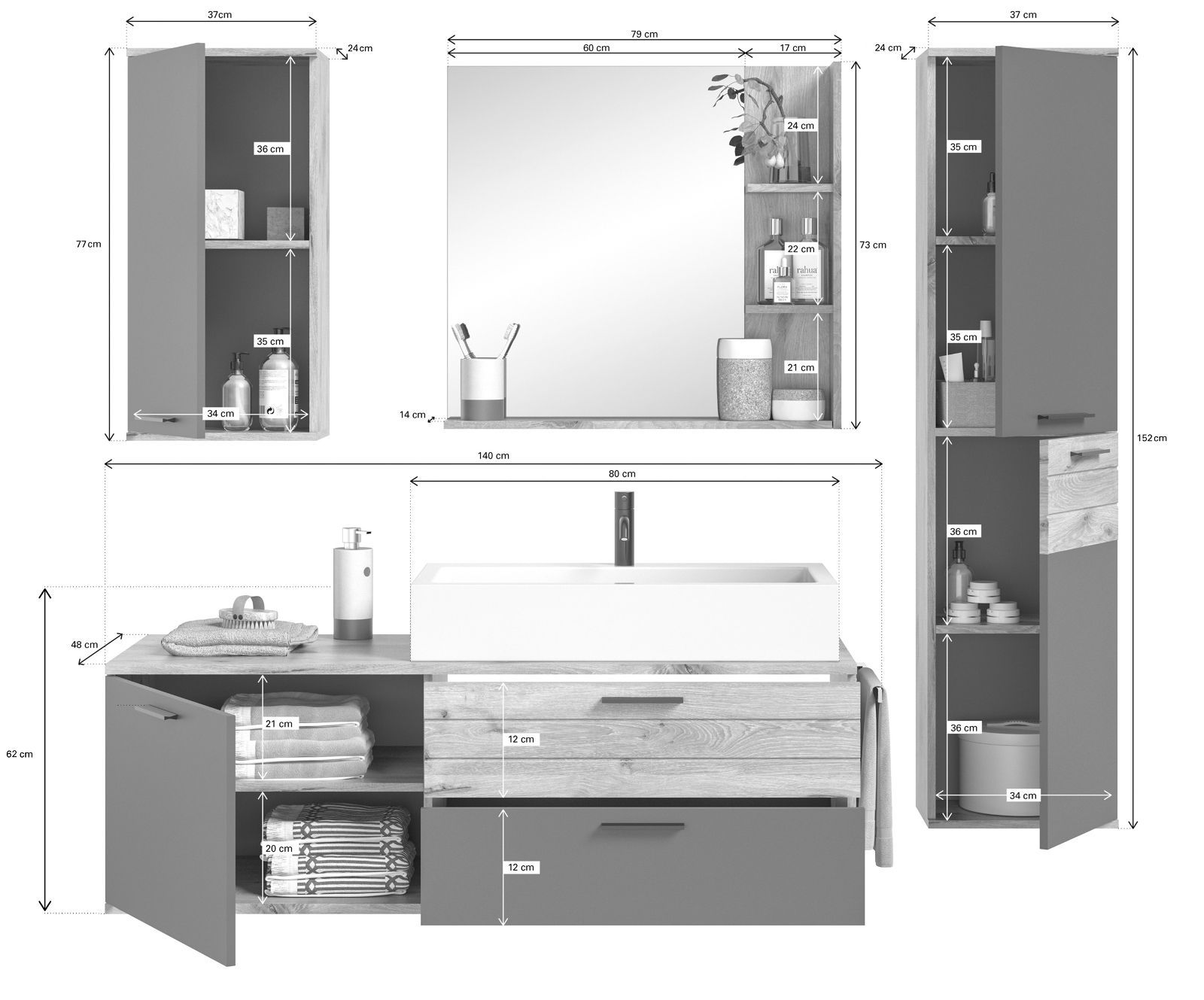Badmöbel Badezimmer Set Bad komplett inklusive Waschbecken Eiche und grau Tomaso