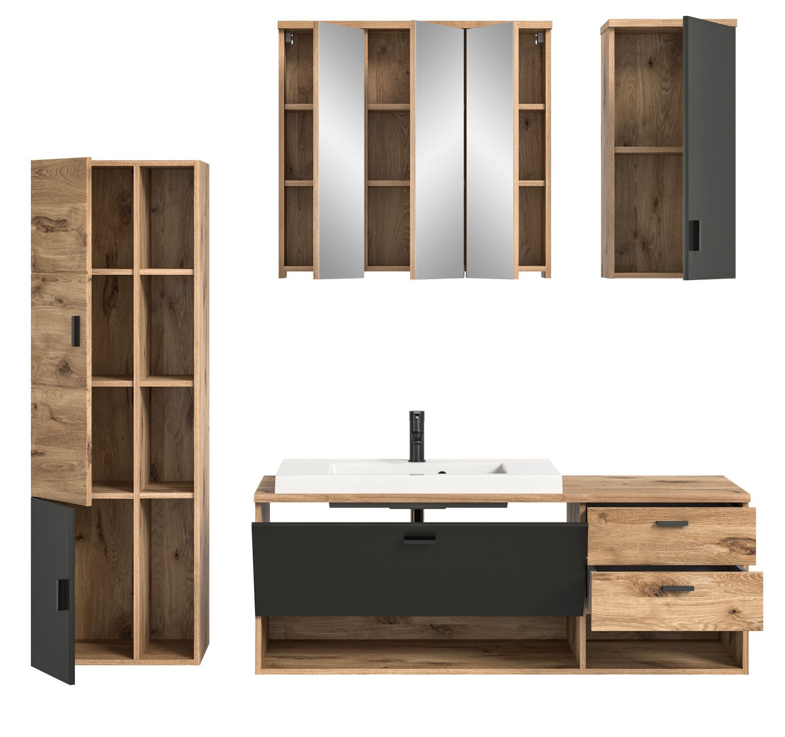 Badmöbel Badezimmer Set Bad komplett mit Waschbecken Eiche grau Soft-Close Oderzo