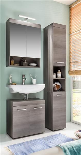 Trendteam Badmöbel-Kombination 3-teilig Runner / Moon Sardegna Rauchsilber Nachbildung