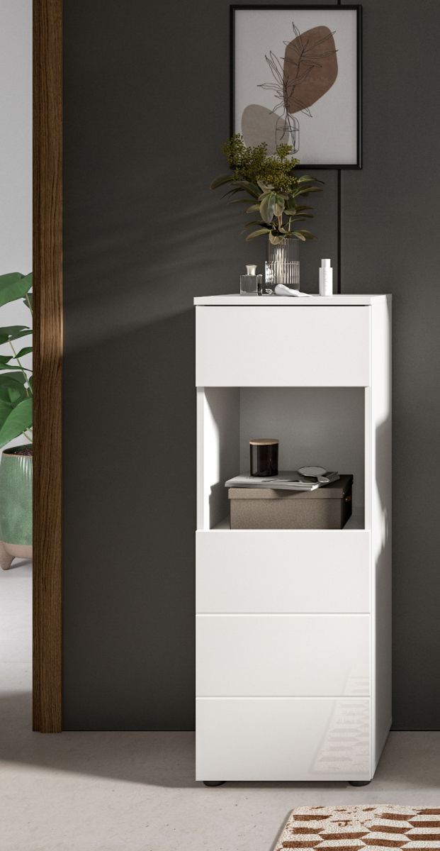 Badmöbel Kommode Badezimmer Unterschrank weiß Hochglanz Badkommode Larik 38 x 106 cm