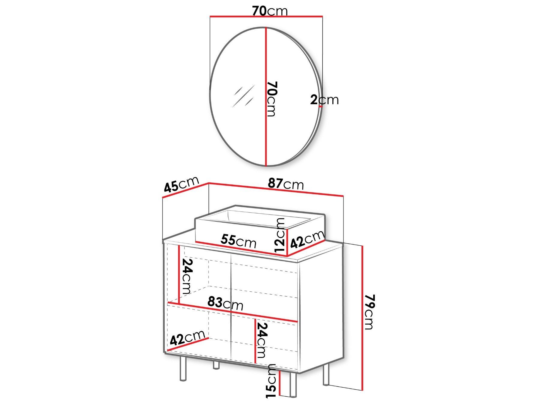 Badmöbel Nubia I Schrank mit Spiegel Badmöbel-Set