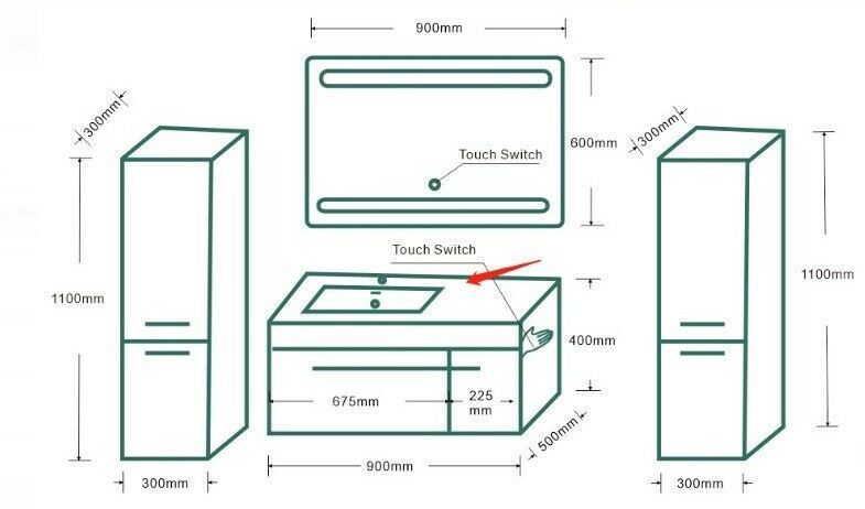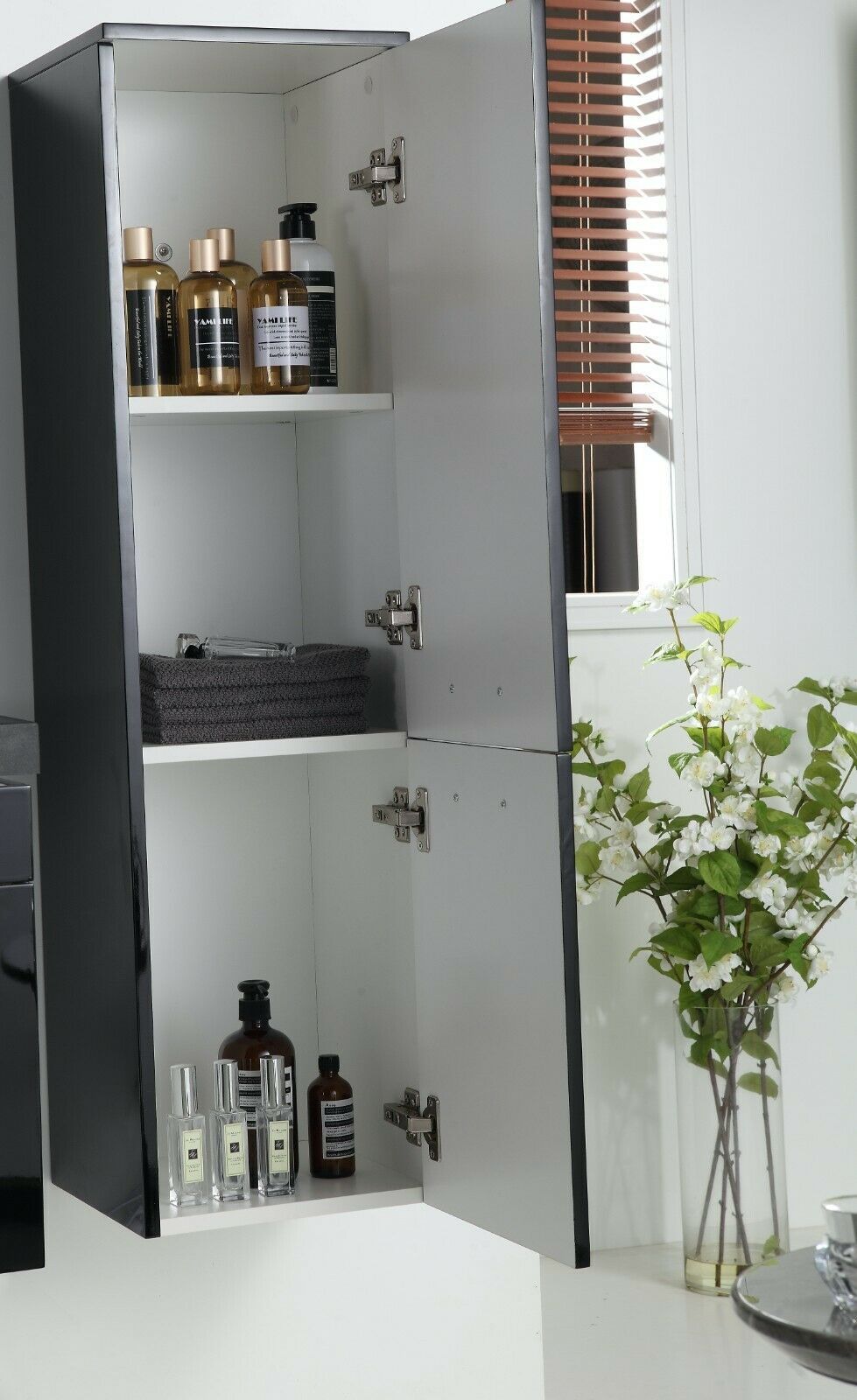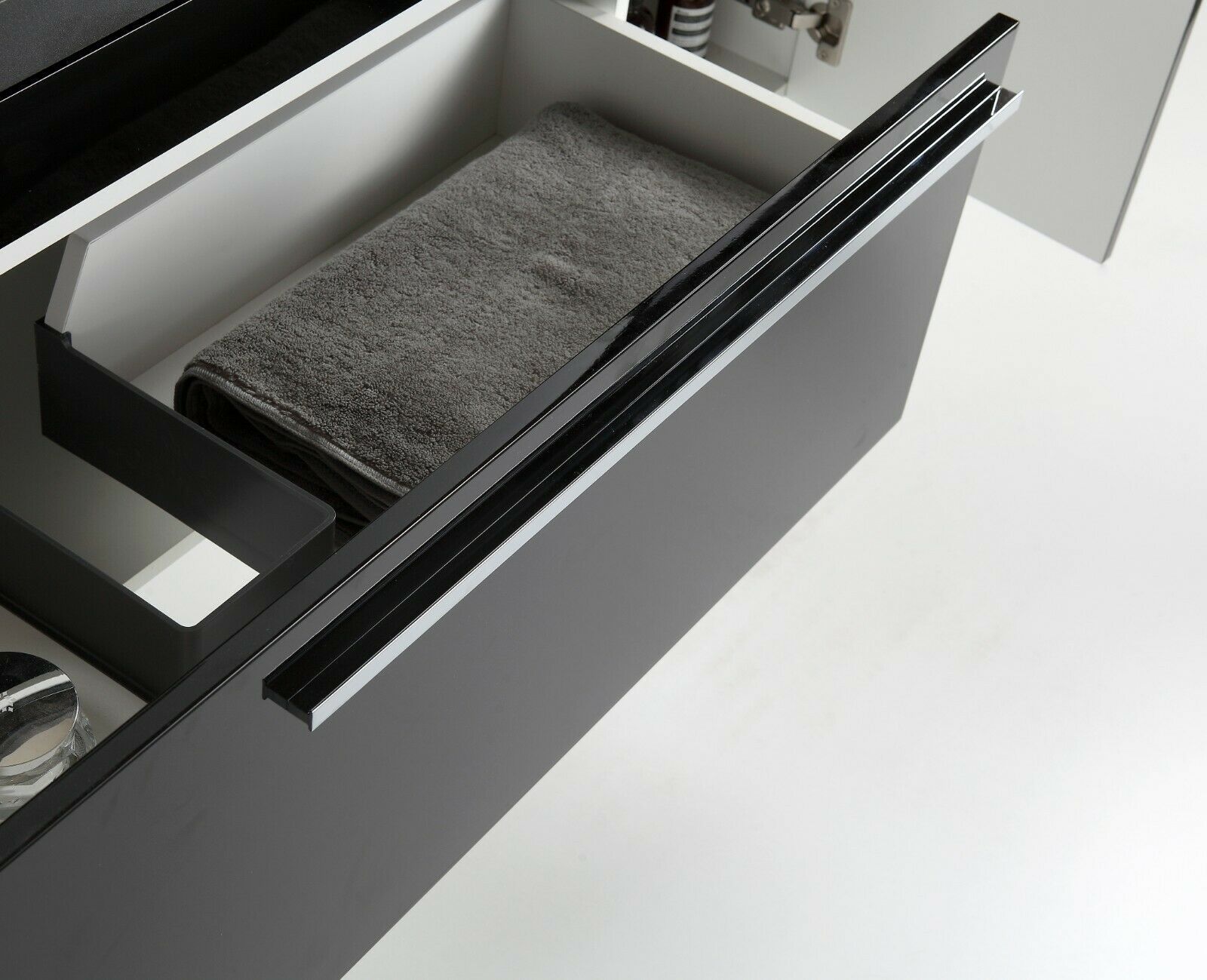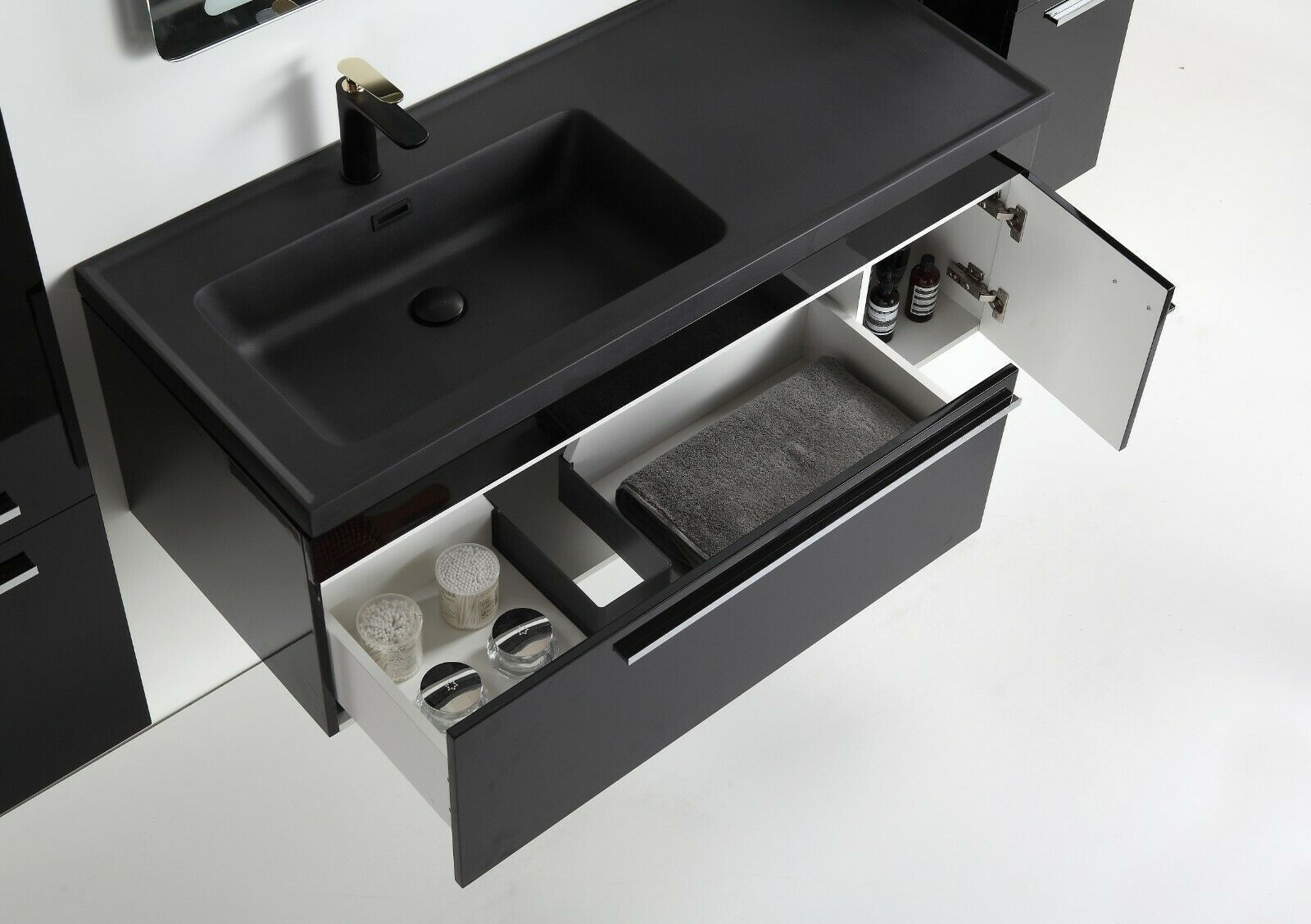 Badmöbel Set 10 Teilig 240cm Hochglanz Schwarz LED Spiegel Badezimmer Badschrank
