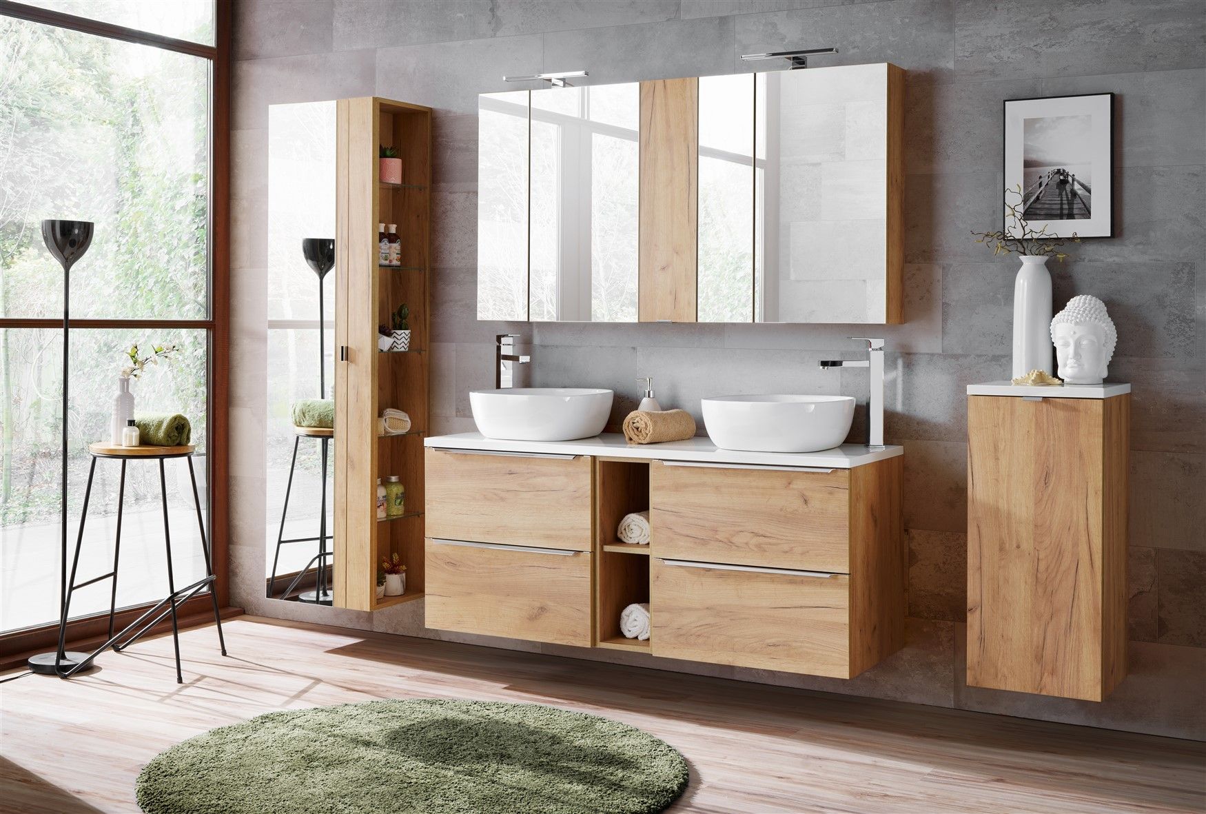 Badmöbel Set 11-tlg Badezimmerset Perugia Gold Eiche Set.7