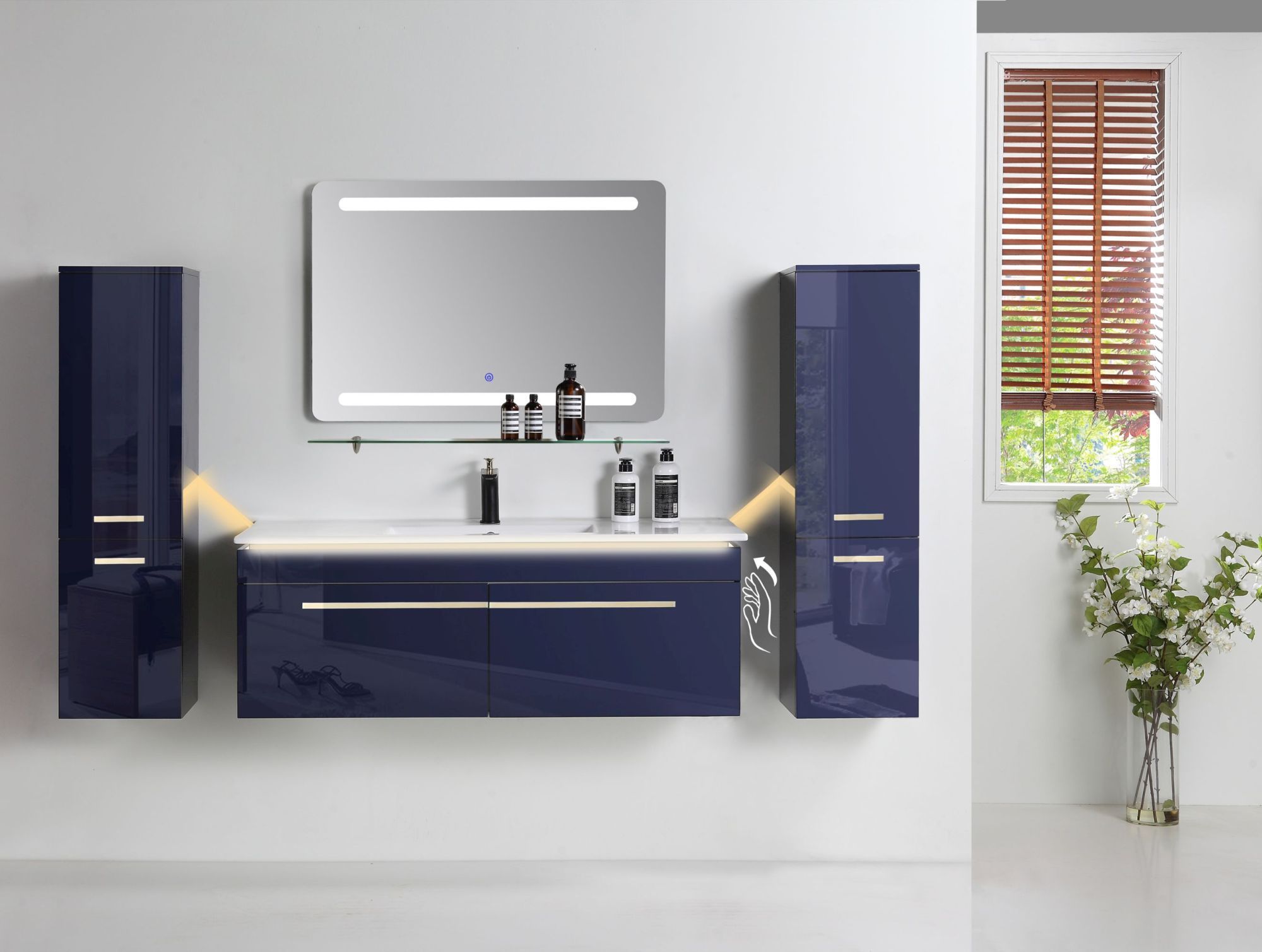 Badmöbel Set 120 cm Königsblau Hochglanz Lackiert Komplett Badschrank 6 Tlg LED