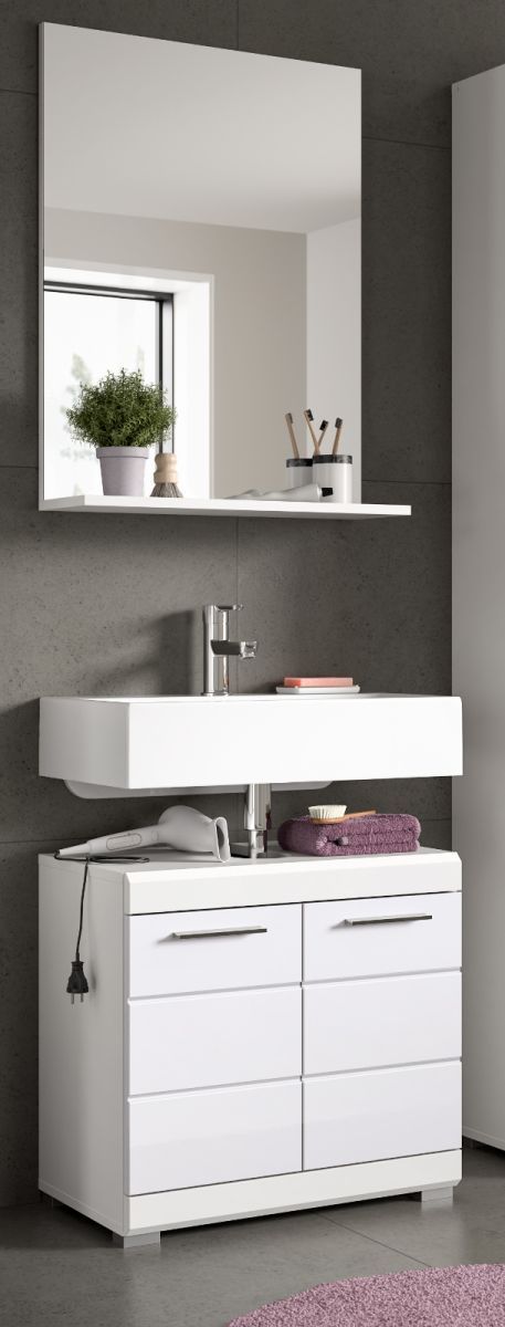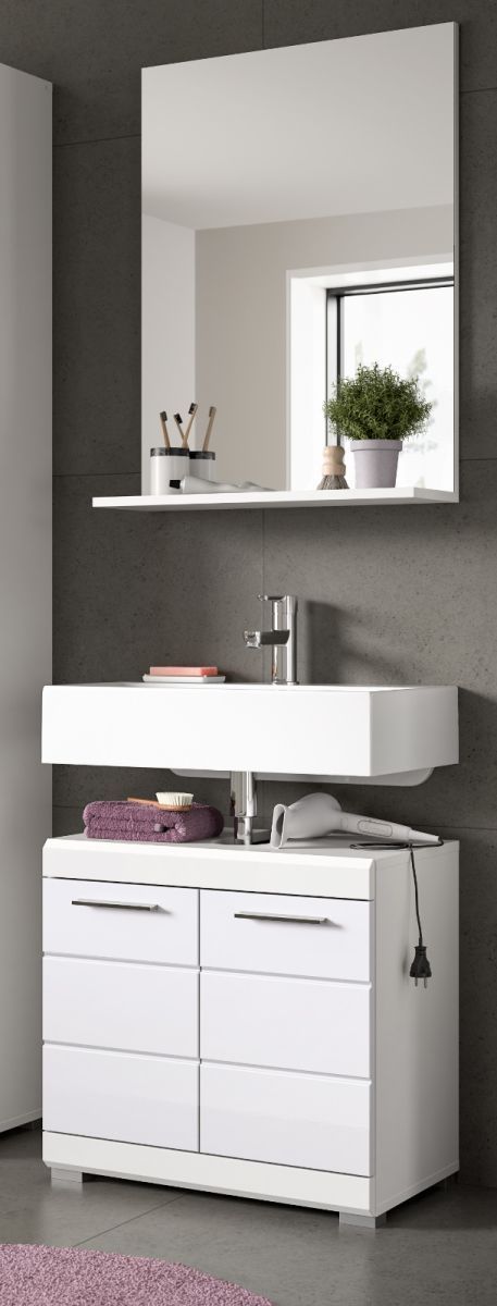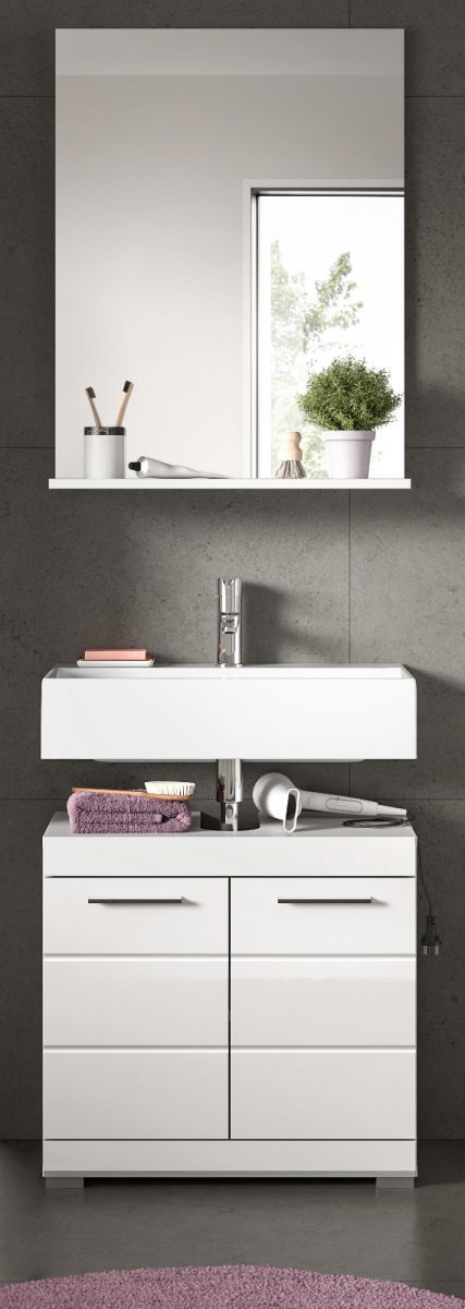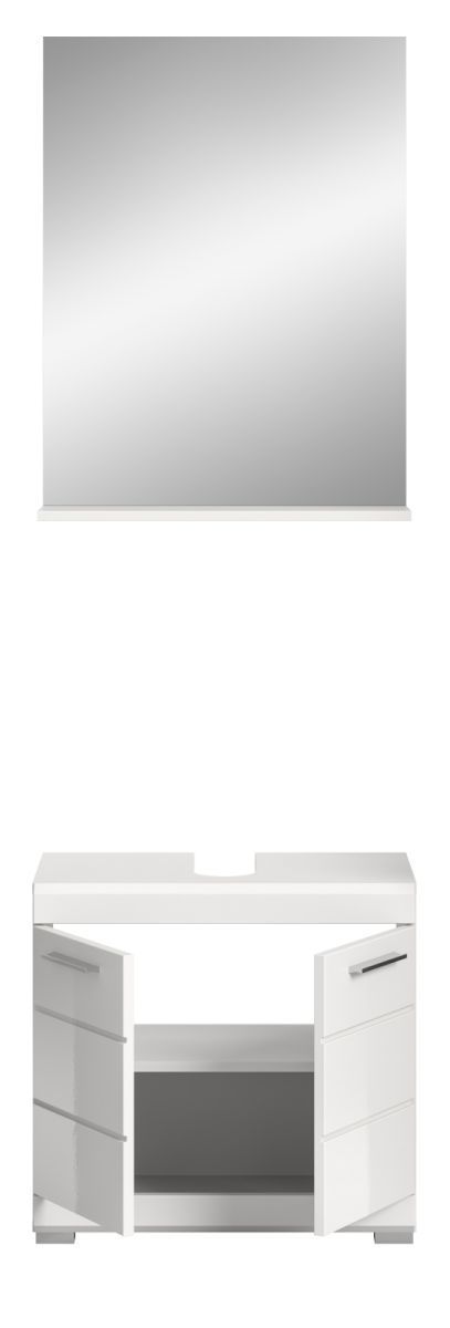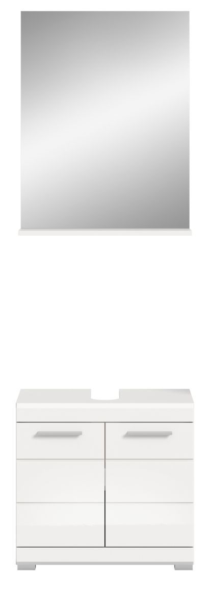 Badmöbel Set 2-tlg mit Waschbeckenunterschrank Spiegel weiß Hochglanz 60 cm Bad Shawn