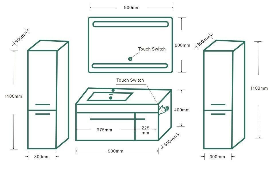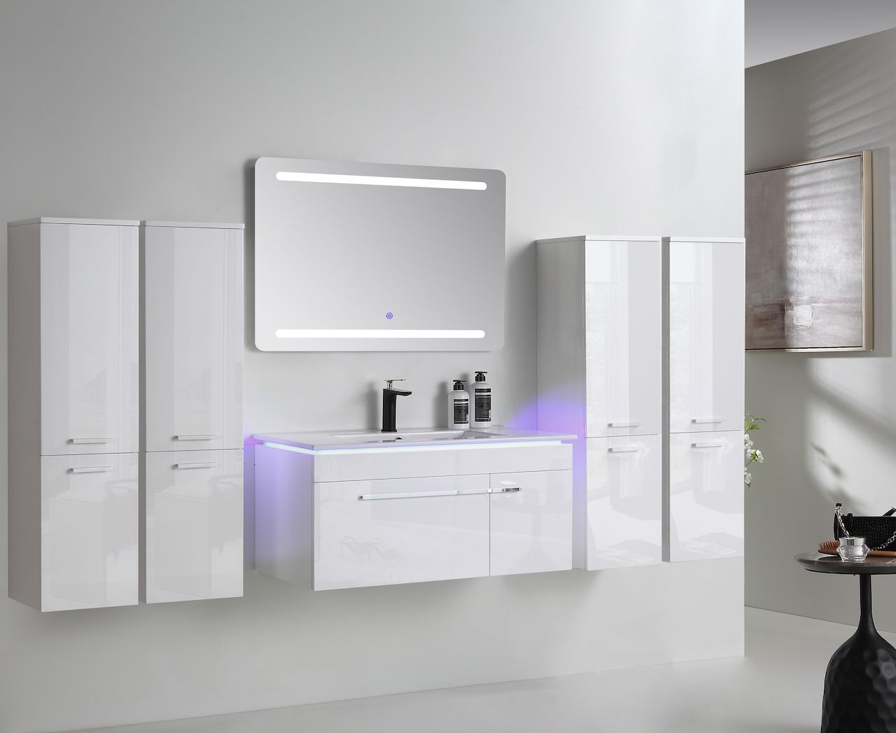 Badmöbel Set 210 cm Weiß Hochglanz Lackiert Komplett Badschrank 8 Tlg LED