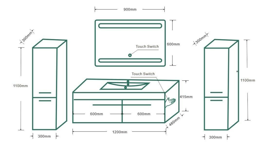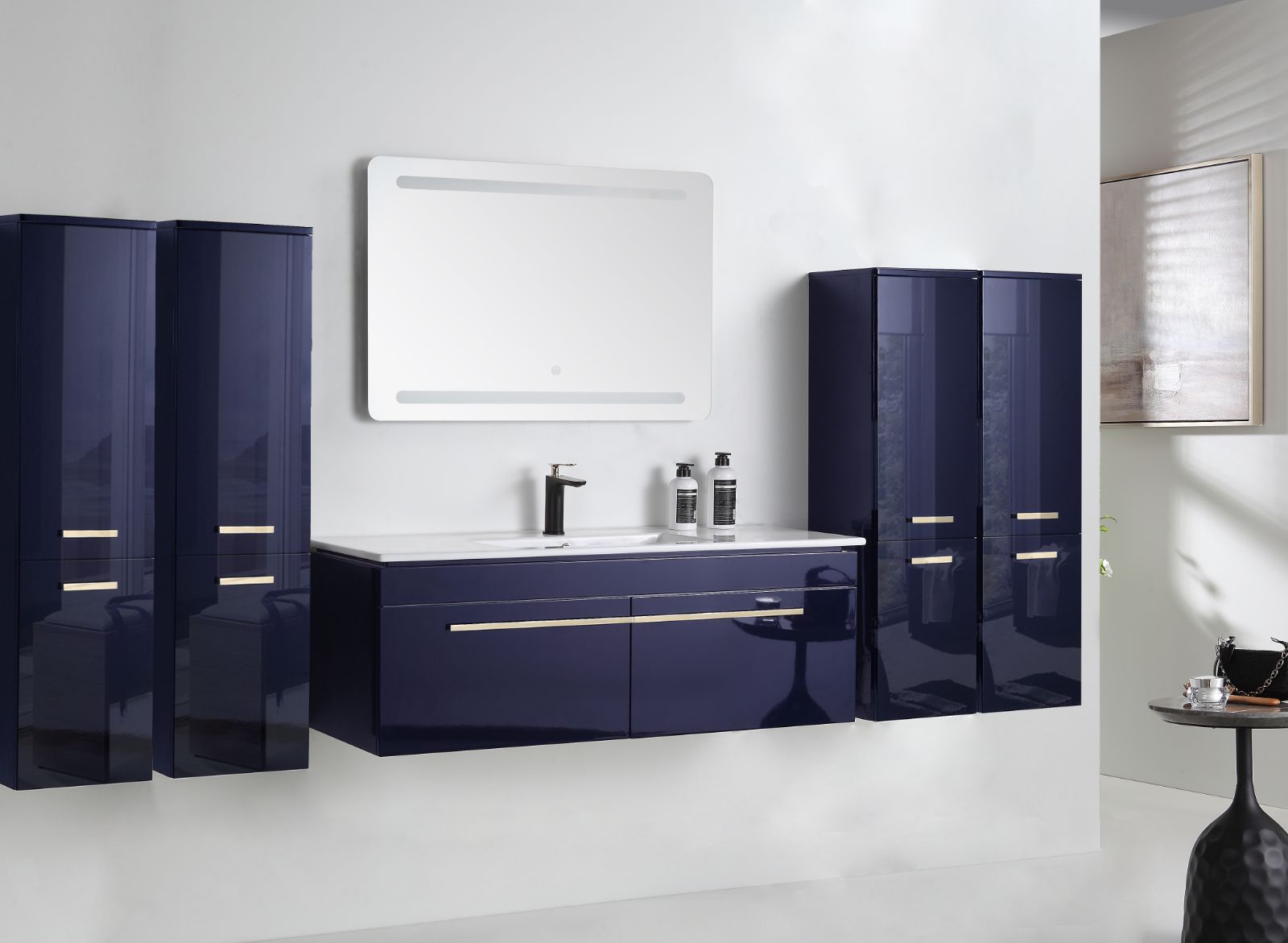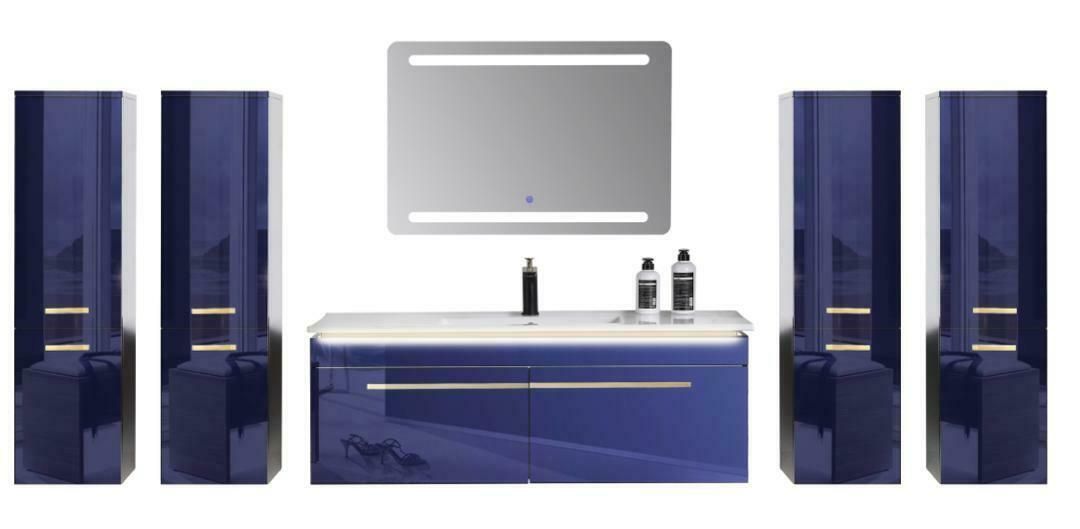 Badmöbel Set 240 cm Königsblau Hochglanz Lackiert Komplett Badschrank 7 Tlg LED