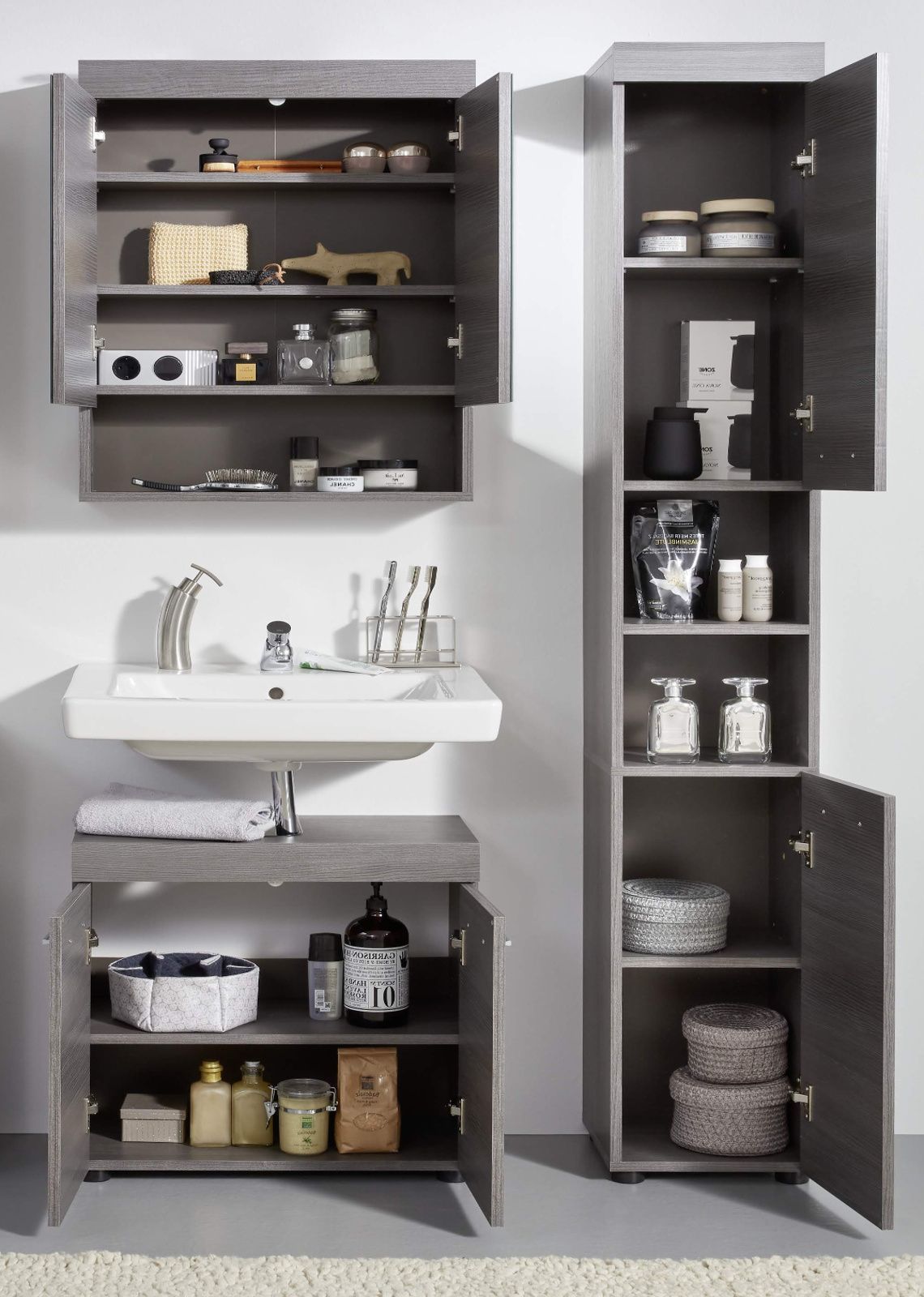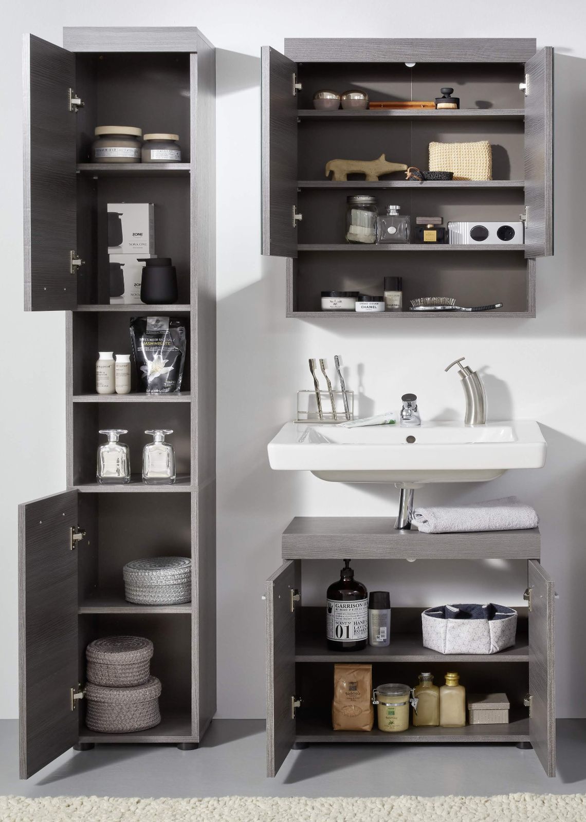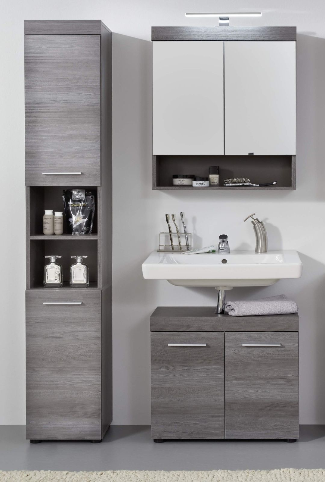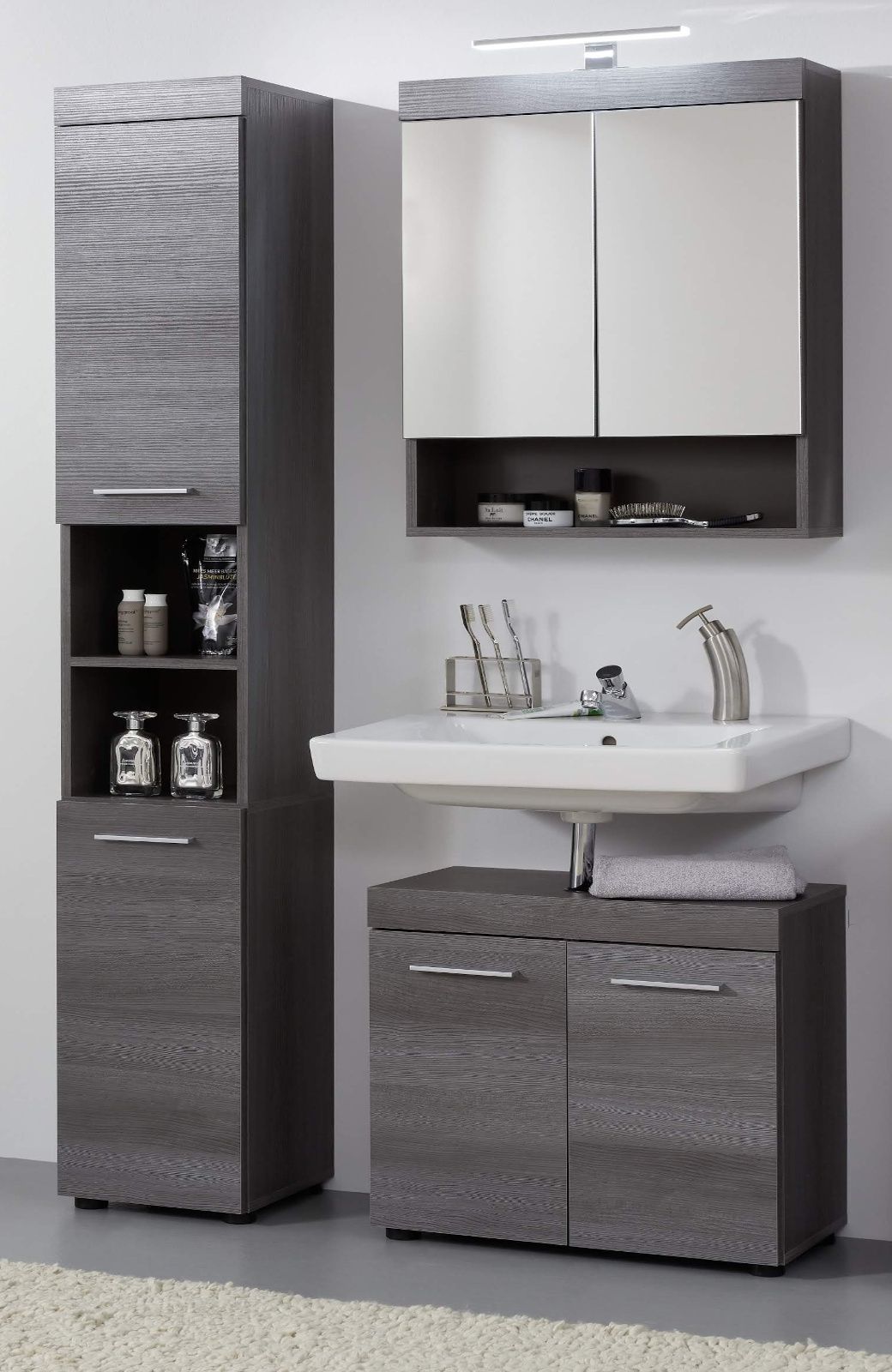 Trendteam Badmöbel Set 3-tlg. grau Sardegna Hochschrank Unterschrank Spiegelschrank Runner