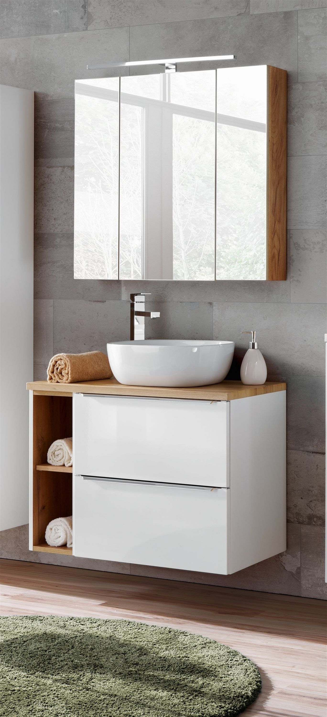 Badmöbel Set 4-tlg Badezimmerset Perugia Weiss HGL ohne Waschbecken