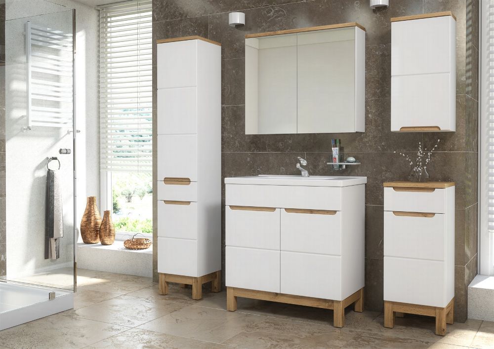 Badmöbel Set 5-tlg Badezimmerset DEVI Weiss HGL inkl. Waschtisch 80 cm