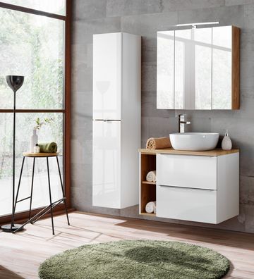 • Badmöbel Set 6-tlg Badezimmerset Perugia Weiss Hochglanz Set.3